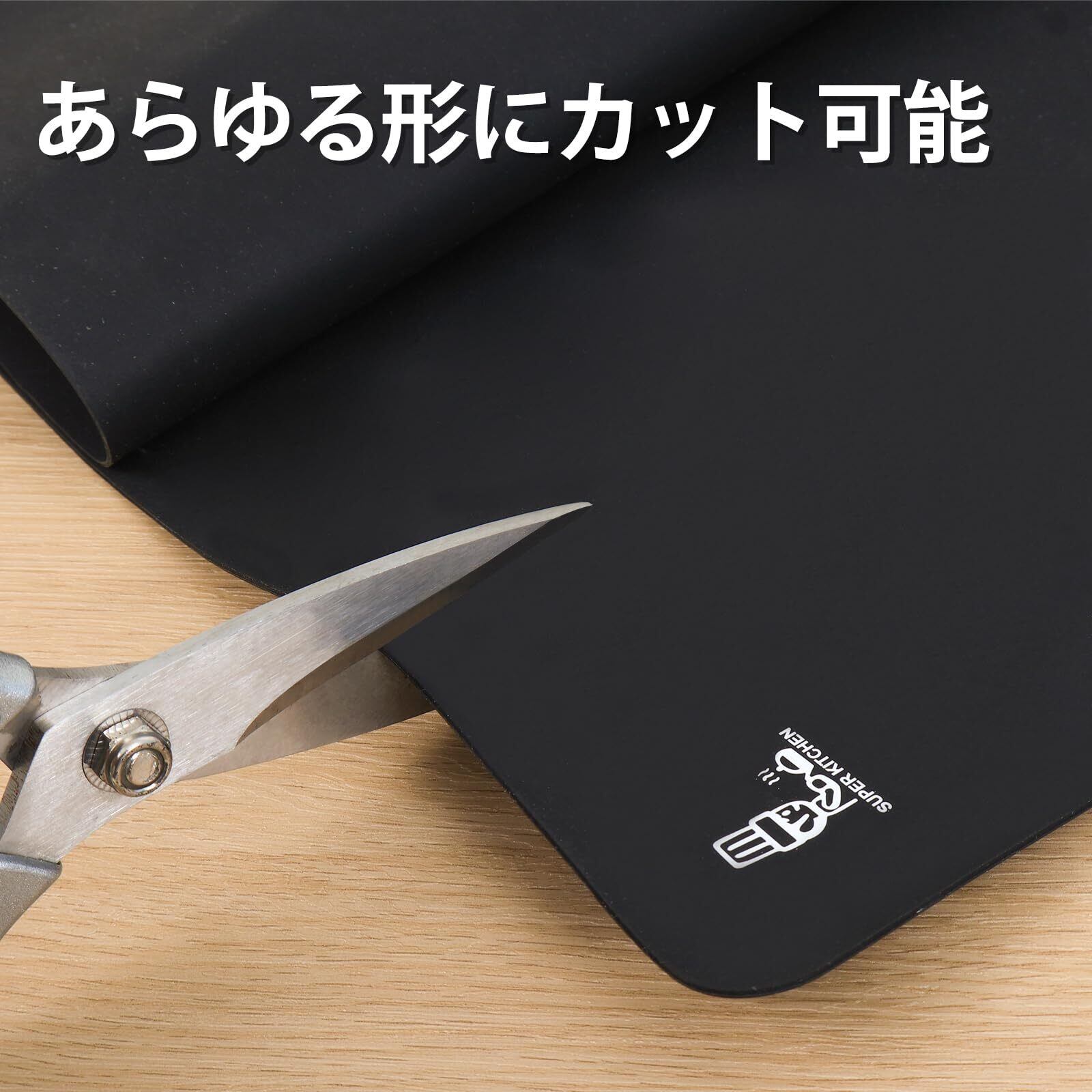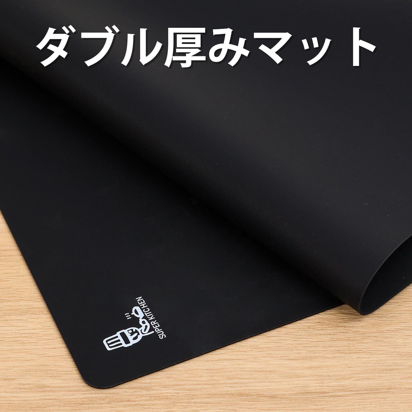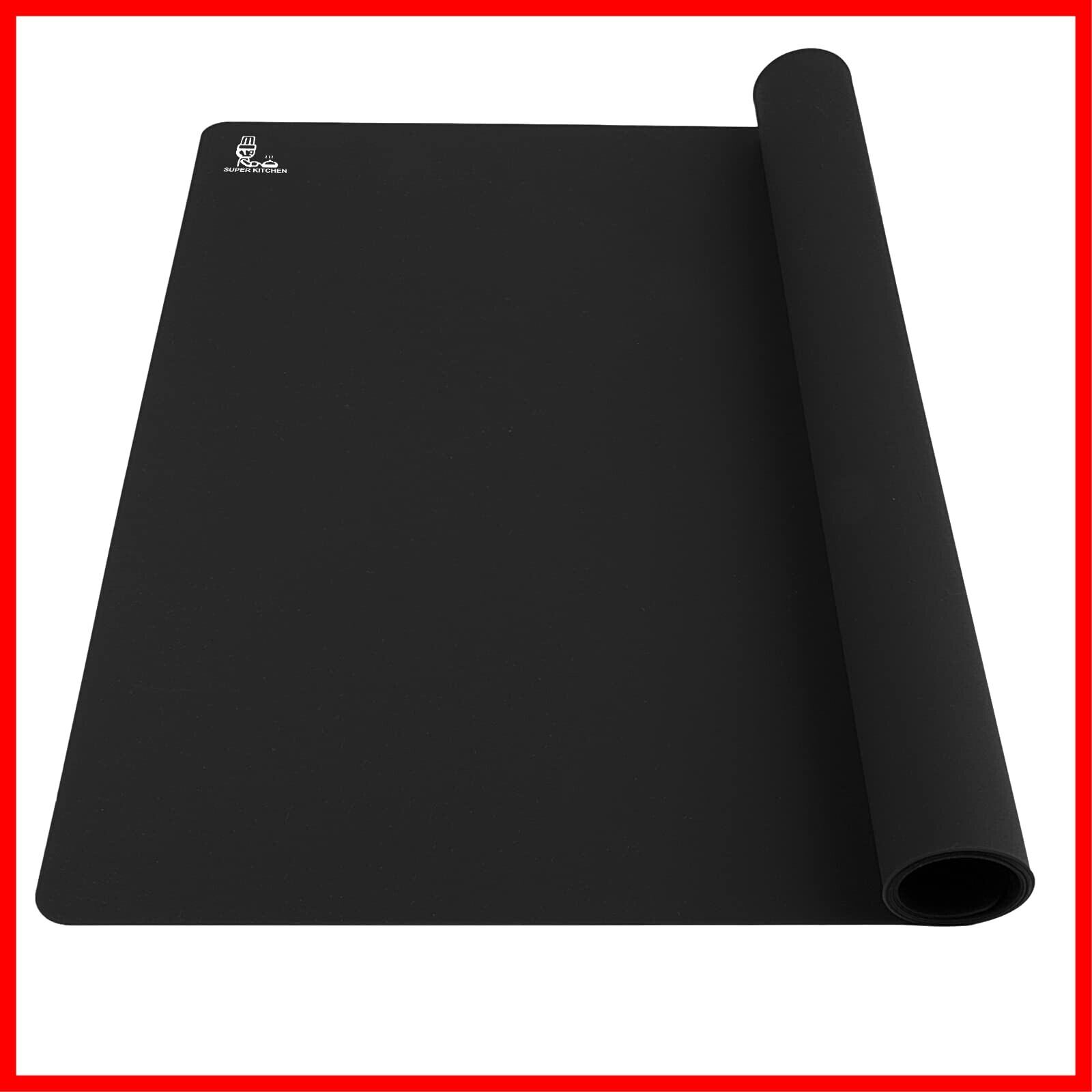 SUPER KITCHEN 調理台保護マット 滑り止め 耐熱 ノンスティッククッキングマット 食品級 大きいサイズ シリコーン 製菓マット キッチン パン/クッキー/ピザ ベーキングマット 製菓道具 樹脂モールド用 クラフトマット 60×40cm (黒)