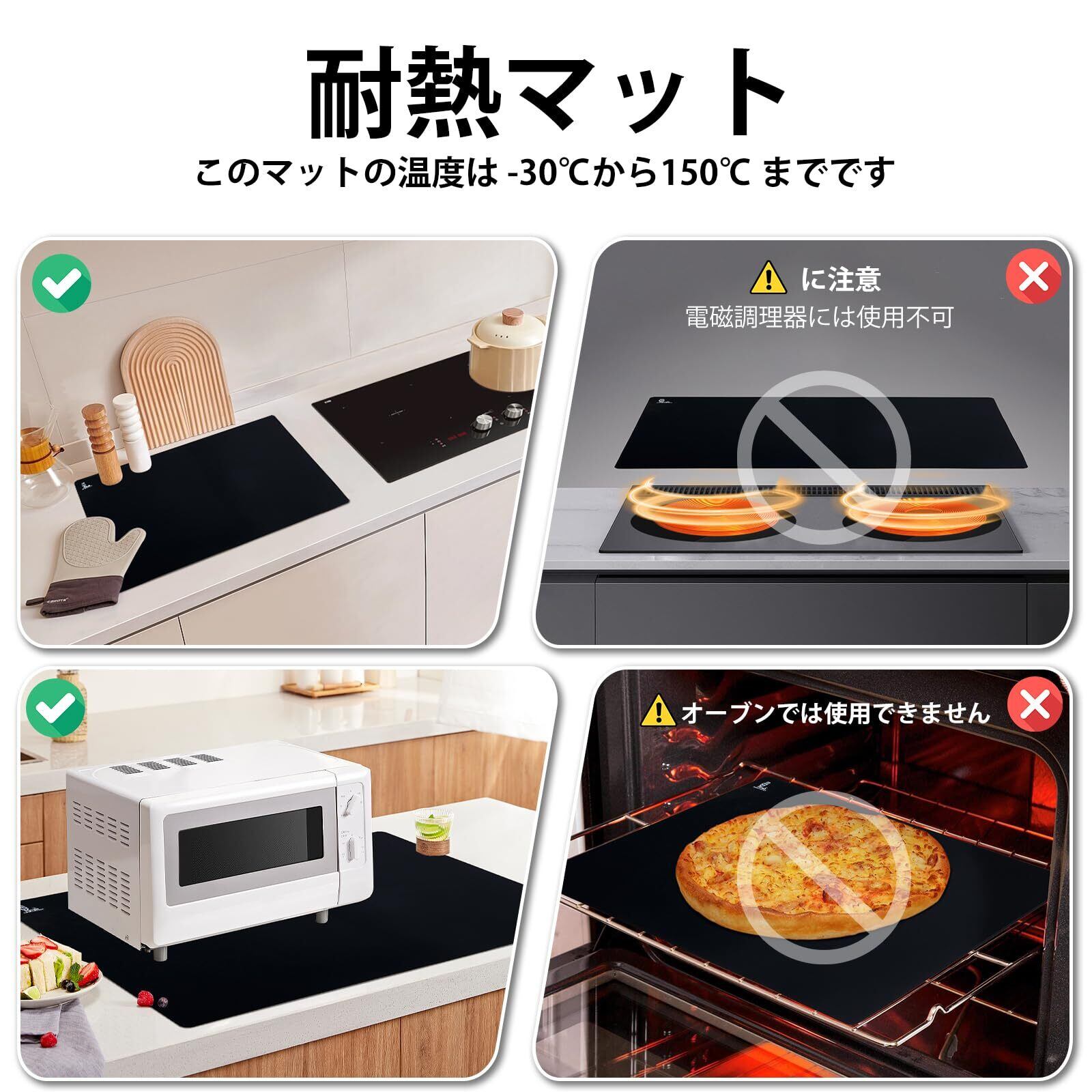 ノンスティック&クリーニングが簡単:このシリコンマットはノンスティック表面を備え、それにフレキシブルなので、クリーニングがすごく簡単で、食器洗い機にも安全です。このマットの温度は-30℃から150℃までです。