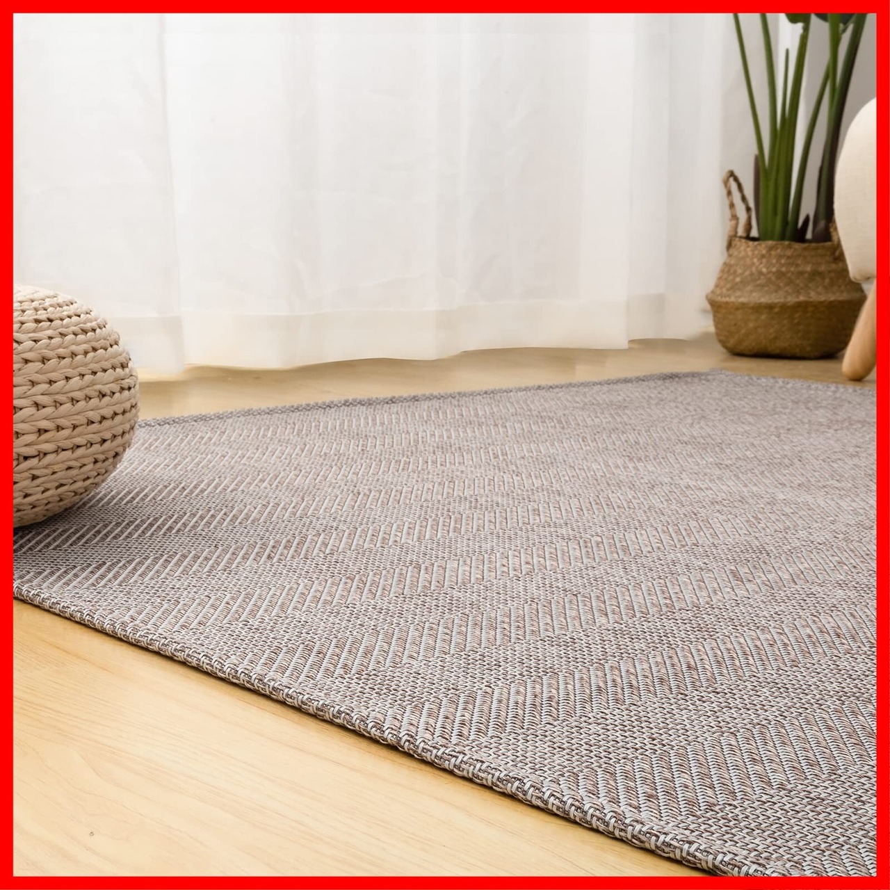 【可愛い編み地模様】こちらのラグは白系の色糸を横に、同色系の色糸を混ぜて、縦に編むことで、立体感のあるヘリンボンに仕上げました。色糸の配分によって立体的なグラデーションに。インテリアの邪魔をせず、どんなお部屋にも馴染みやすいので、いろいろなスタイルを楽しみたい方にも長く愛用していただけます。ペットもお気に入りの一枚です。さらに、ペットが引っ掻いても壊れにくい非常に丈夫な作りになっていますので、安心してご使用いただけます。