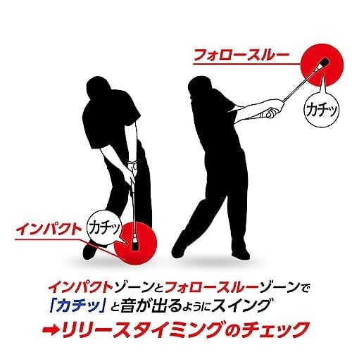 【 カチッ!の音でミスショットを減らす 】 スイングしたときに、ヘッドスピードが設定した速度に達したタイミングと減速したときのタイミングで計2回「カチッ!」と音が鳴ります。これを目安に、インパクトゾーンとフォロースルーゾーンで音が鳴るようにスイングすることでミスショットを減らす「正しいスイングリズム」を習得できます!