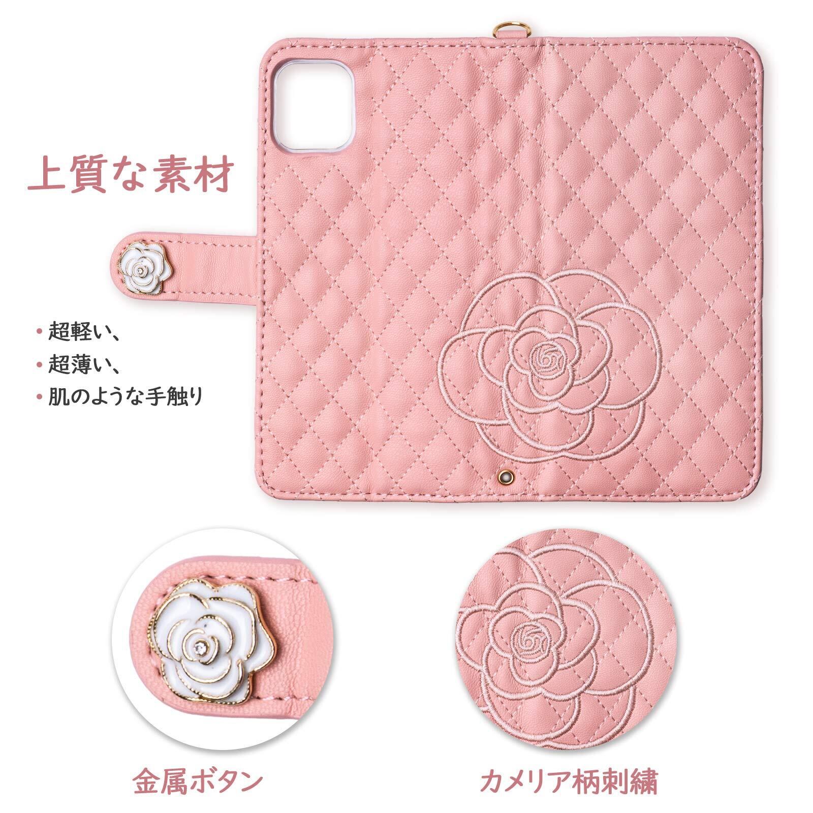 【上質な素材&オリジナルデザイン】超軽い、超薄い、肌のような手触り。オリジナルの花(カメリア)の刺繍が可愛いらしいケースです。高級感が溢れてどんな場所でも自由に使えます。内部は透明柔軟なPU素材を使用です、スマホの着脱が簡単ですし、角までしっかり保護できるケースです。丁寧に刺繍されたので、糸のほつれを気にする必要がありません。