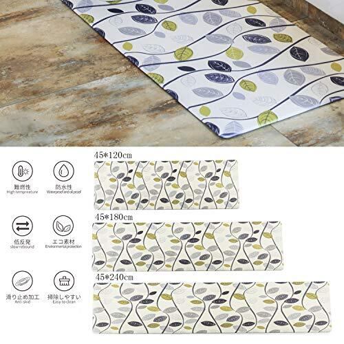 Ashmore キッチンマット 拭ける台所マ ット ずれない PVCロング床マット 撥水 おしゃれ 滑り止め 抗菌 防炎 厚さ10mm お手入れ簡単 約45cm*240cm リーフ