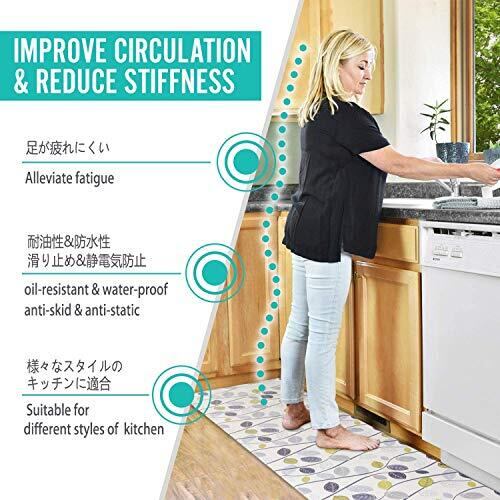 【厚いPVC】 足が疲れにく設計、もちもちの踏み心地でクッション性が高く台所マットです。長時間の立ち仕事も疲れにくい。このマットは素足でも、スリッパを履いたままでもいいです。物が落下しても衝撃を吸収し、床をキズやヘコミから守ります。