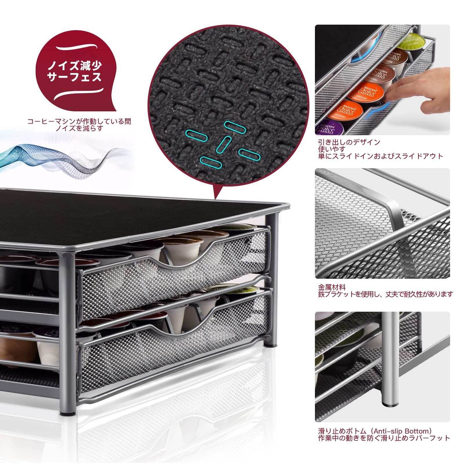 【省スペース】ネスプレッソマシンを引き出しの上に置いて、貴重なカウンタースペースを節約します。底部滑り止めパッド、安全に使用できます。