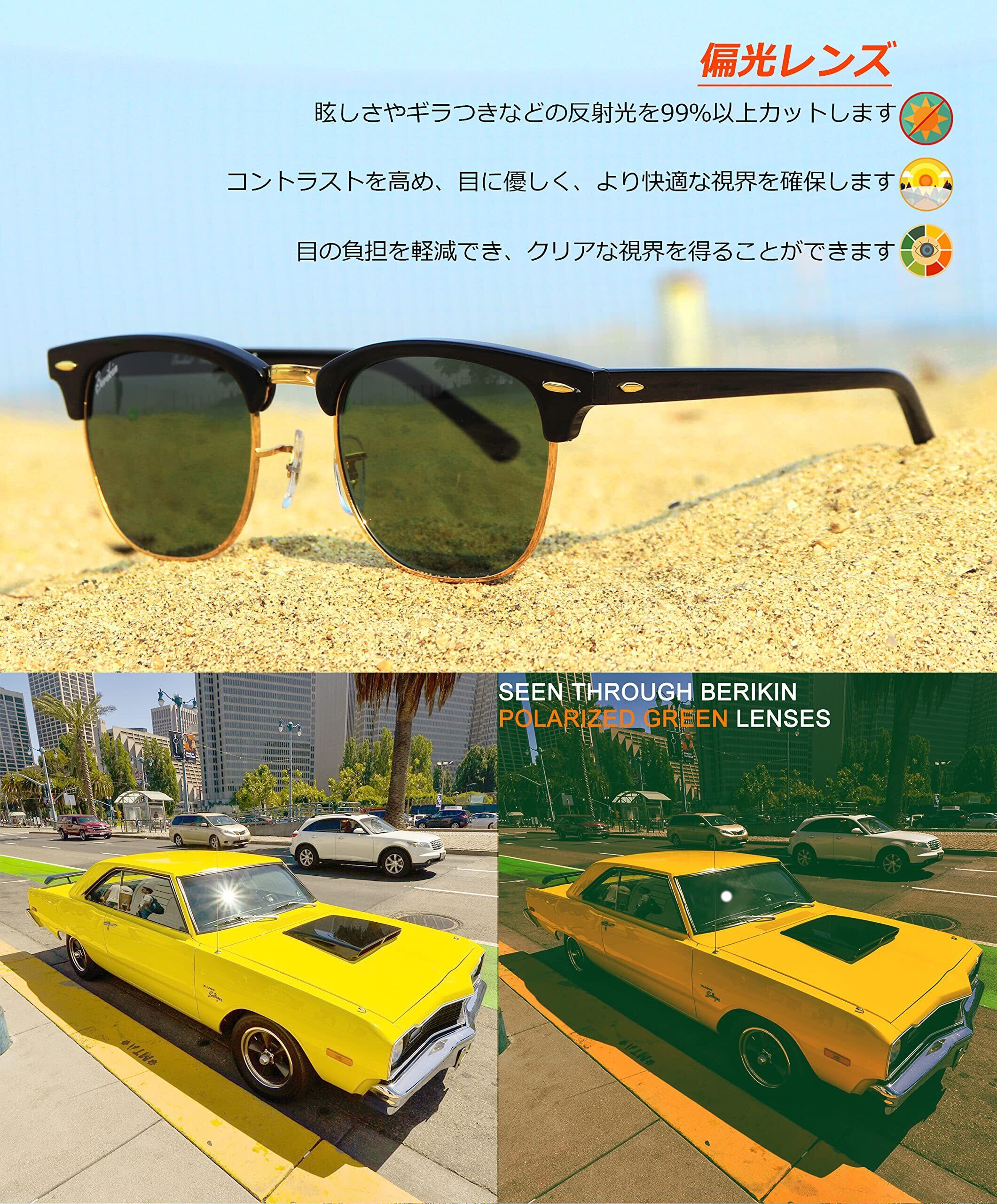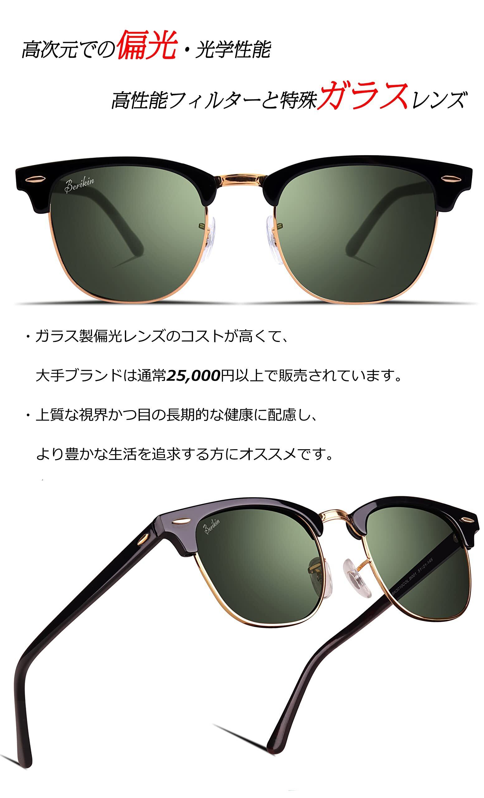 【UV400保護+偏光レンズ】UVA・UVB・UVC&目に有害なブルーライトを99.9%カットし、可視光線透過率10%-20%。BERIKINレンズ特有の重量感によるしっかりとした掛け心地に加えて、傷に強く、優れた解像力が特徴です。眩しさやギラつきなどの反射光を99%以上カットします。また、お客様が豊富なバリエーションからお好みのカラーレンズをお選び頂けます。