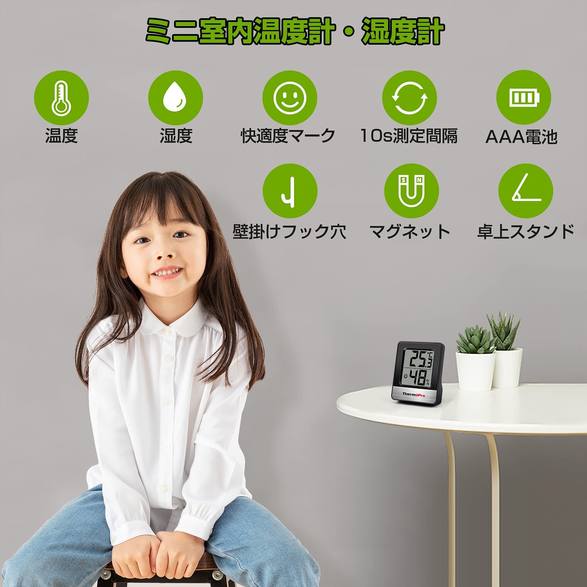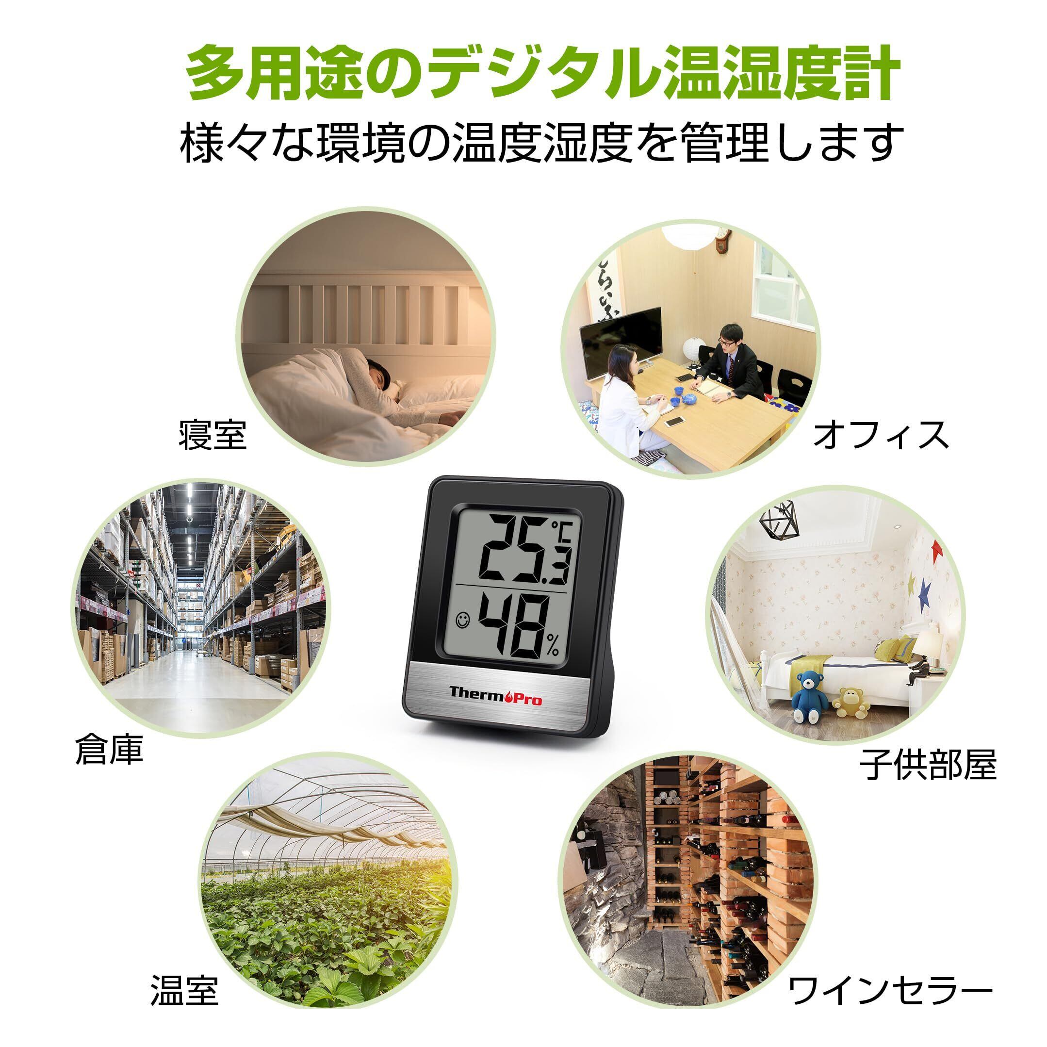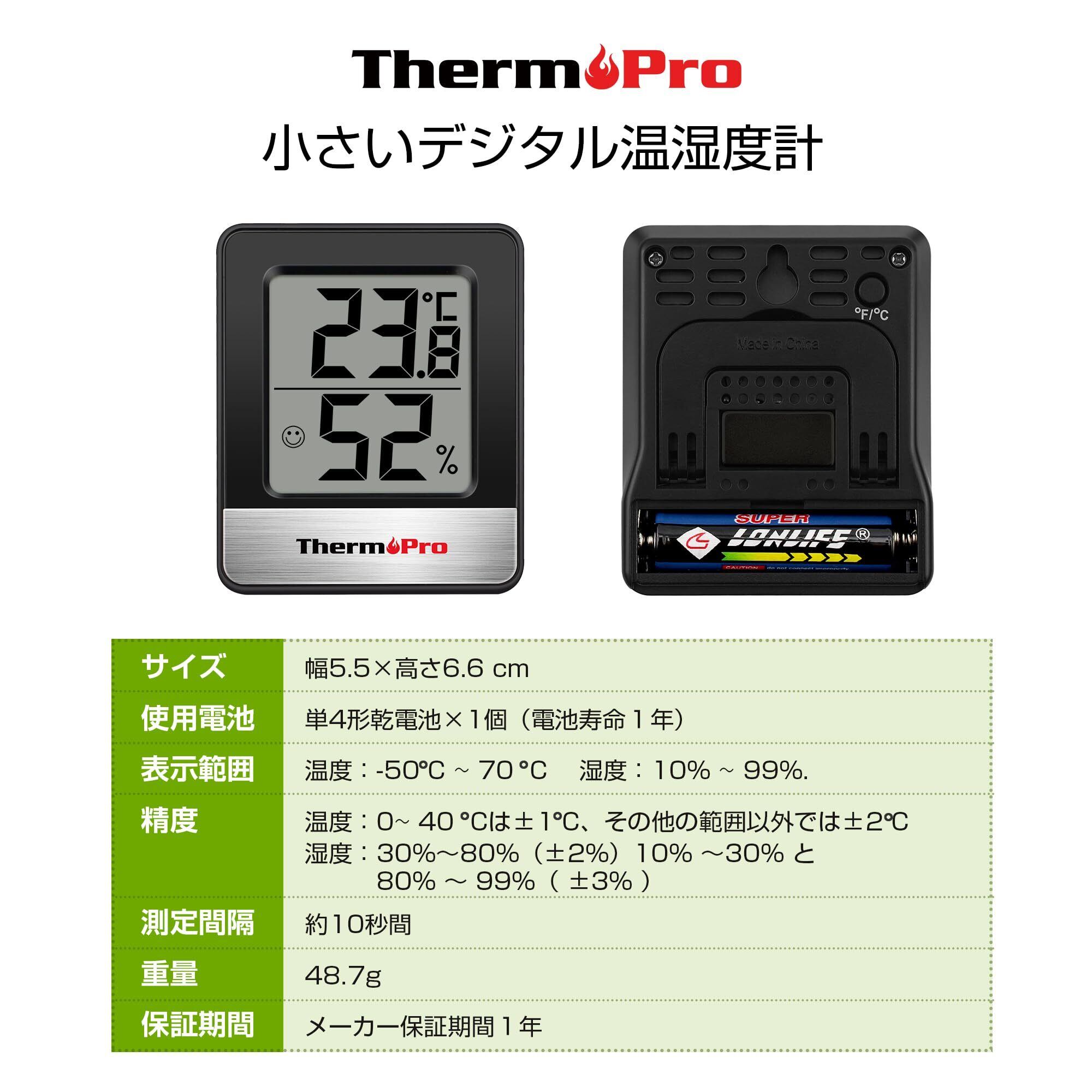 ThermoProサーモプロ 湿度計 温度計 温湿度計デジタル 室内 大画面 見やすい 顔マーク 壁掛け 卓上スタンド マグネット ブラックTP-49