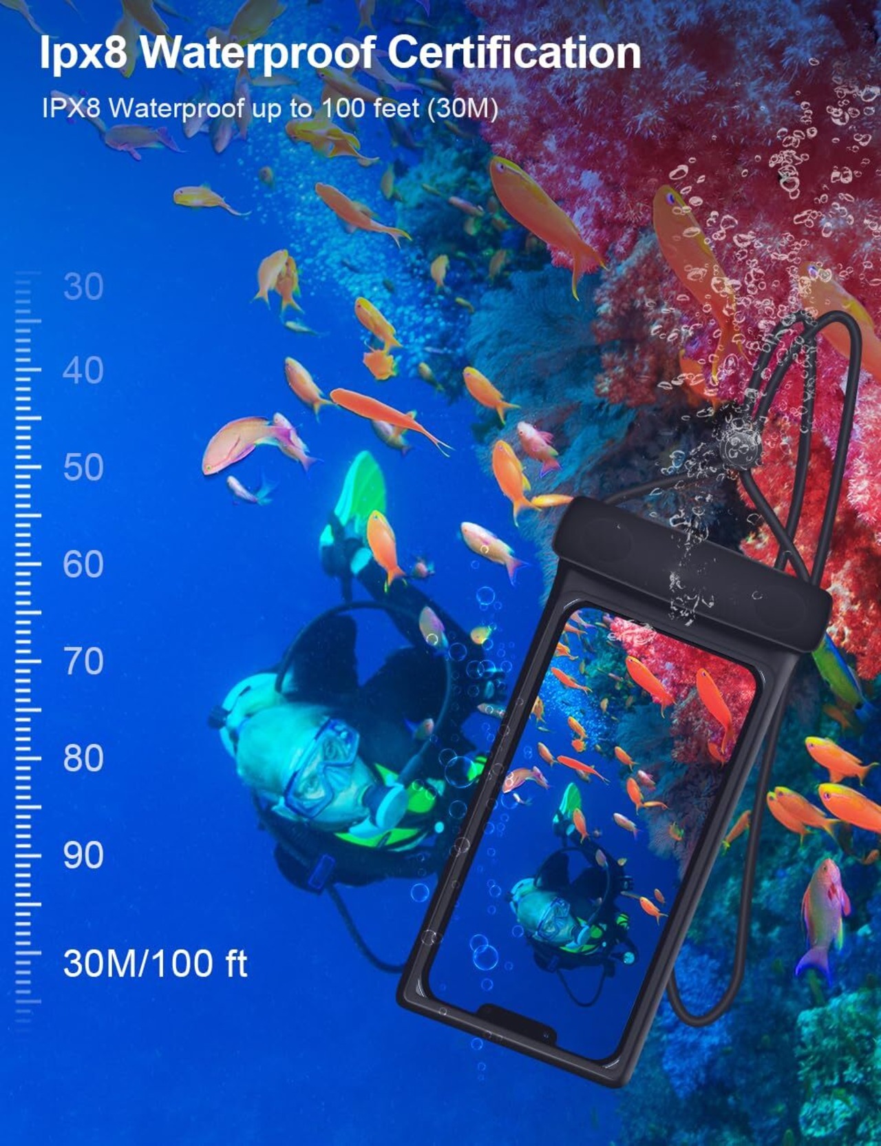 【優れた防水保護】:高品質のTPU素材のバッグボディ+ ABS強化ロッククリップと新しいプロセス射出成形技術を組み合わせることで、防水携帯電話ケースは優れた水中30メートル/ 100フィート(IPX8レベル)認証、携帯電話の柔らかいゴム製バッグボディは、快適なQ感触を持ちながら完全な保護を提供します。