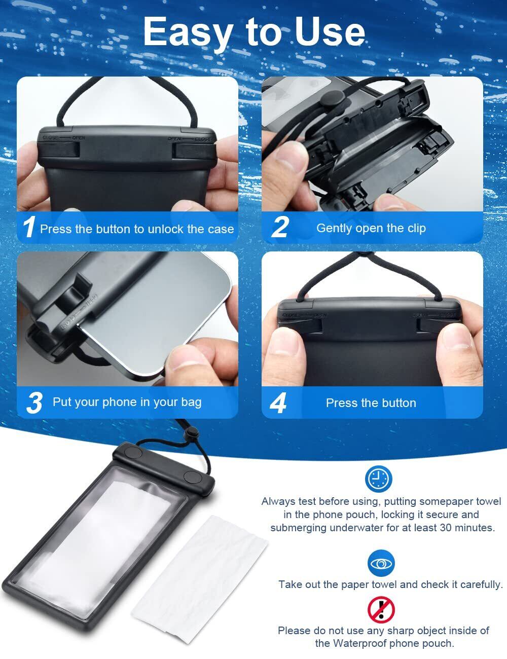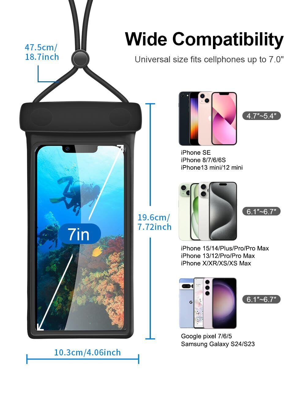 【超クリアウィンドウと敏感なタッチスクリーン】:TPU超透明素材で、タッチスクリーンの操作がスムーズになります。 防水ケースは、Face ID、ビデオ通話、写真/ビデオ録画に干渉しないため、水中でも美しい瞬間を記録できます。快適なネックサスペンションのための調整可能なスナップを備えたワンピースの丸いロープデザイン。 新しいリフト防水クリップはより薄く丸みを帯びており、開閉はより柔軟です。
