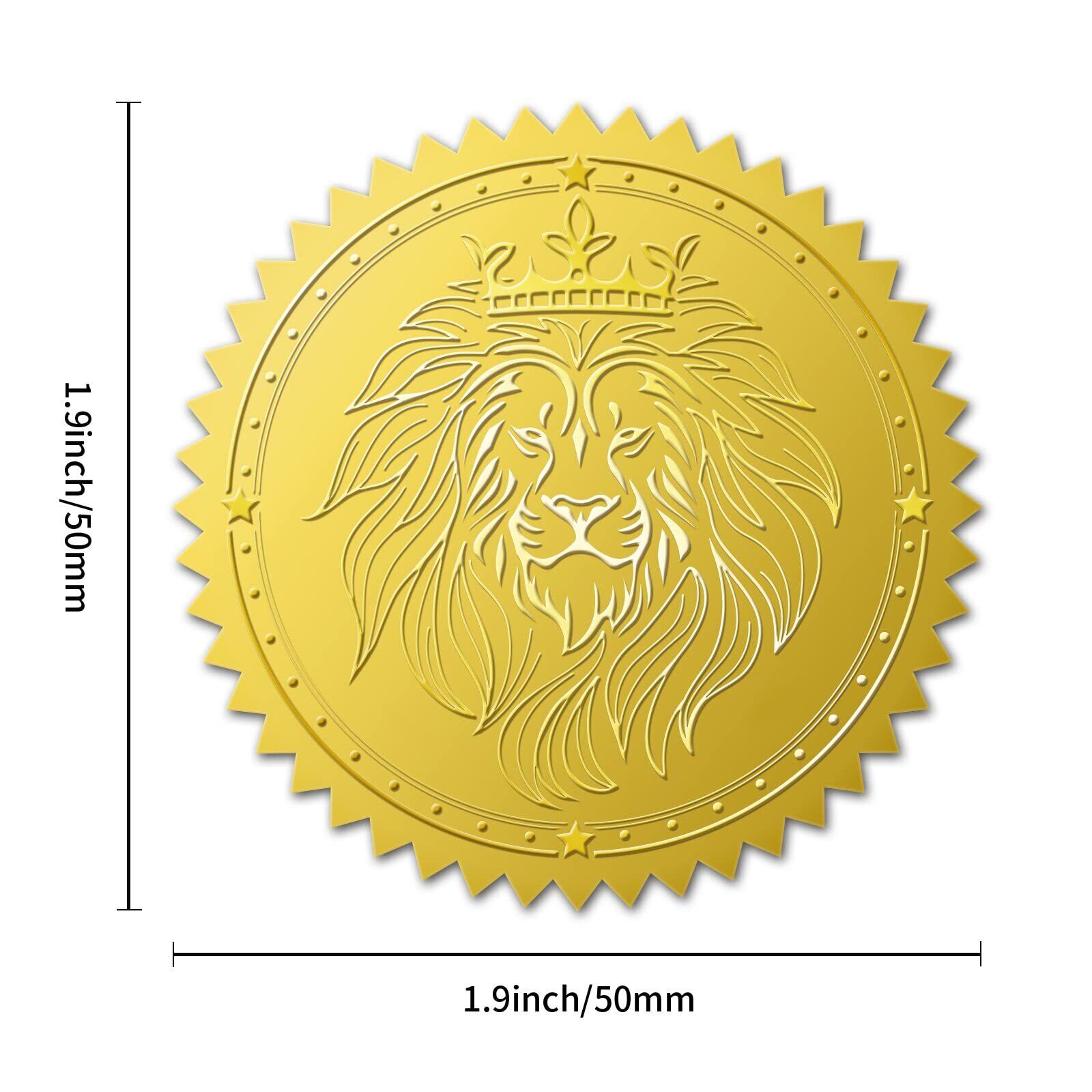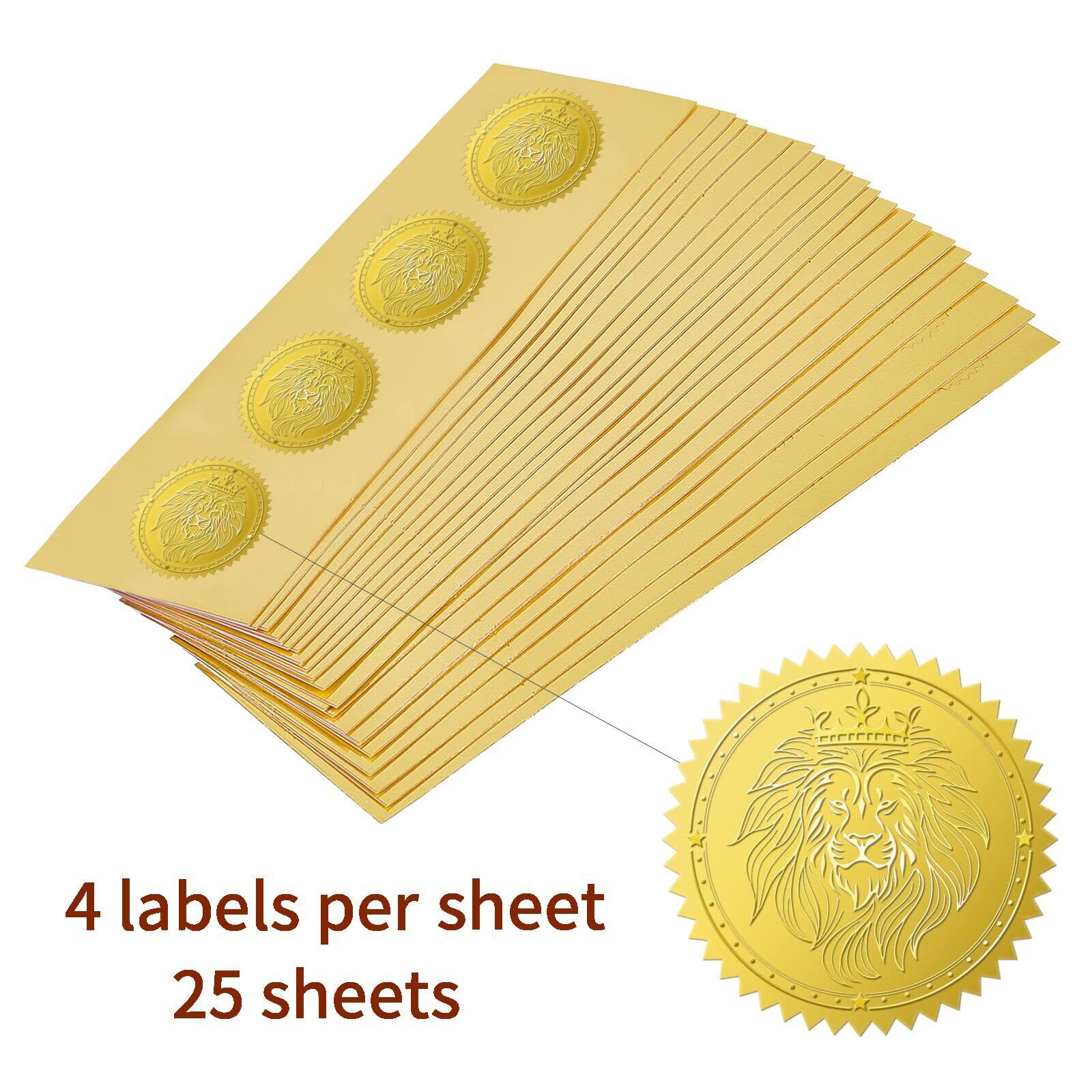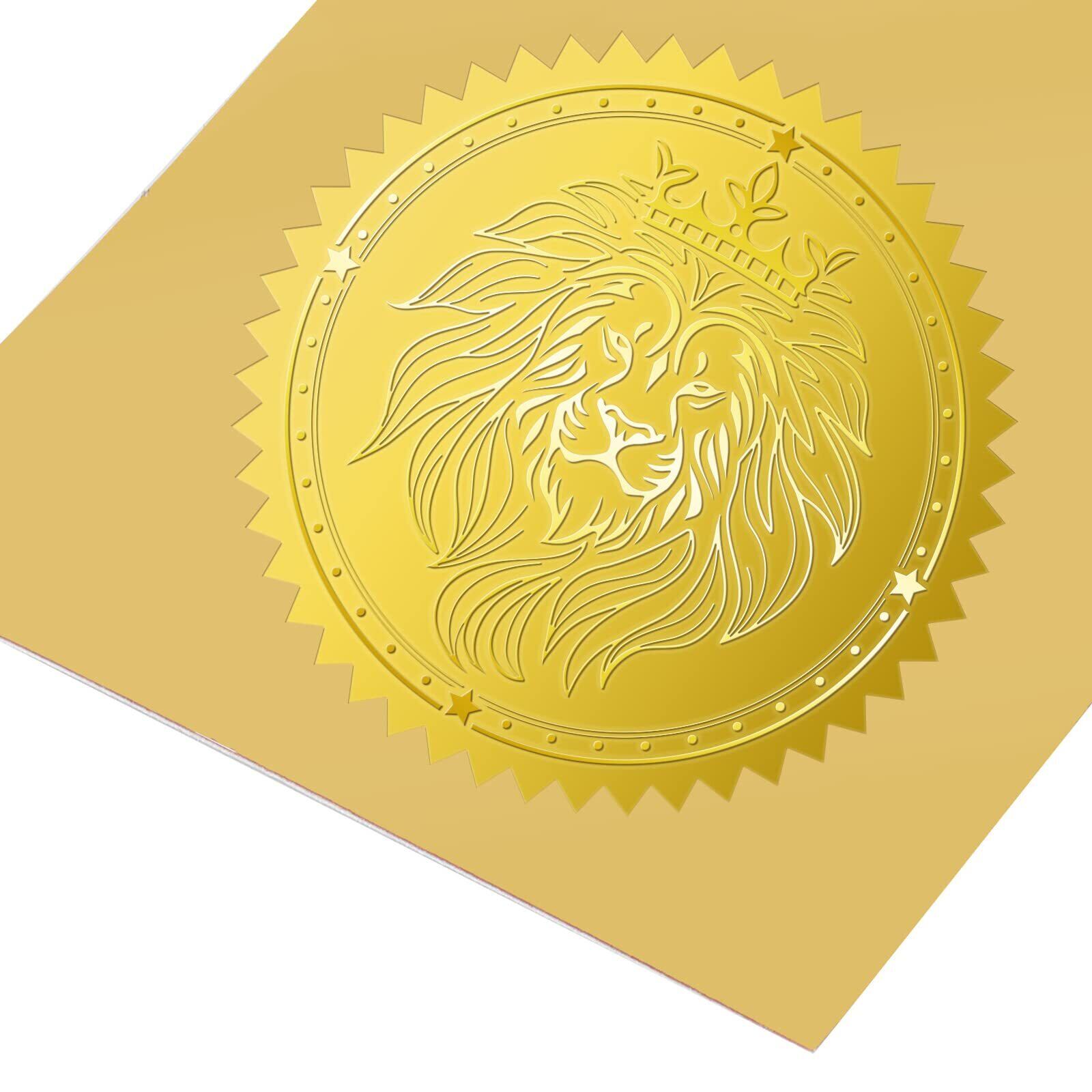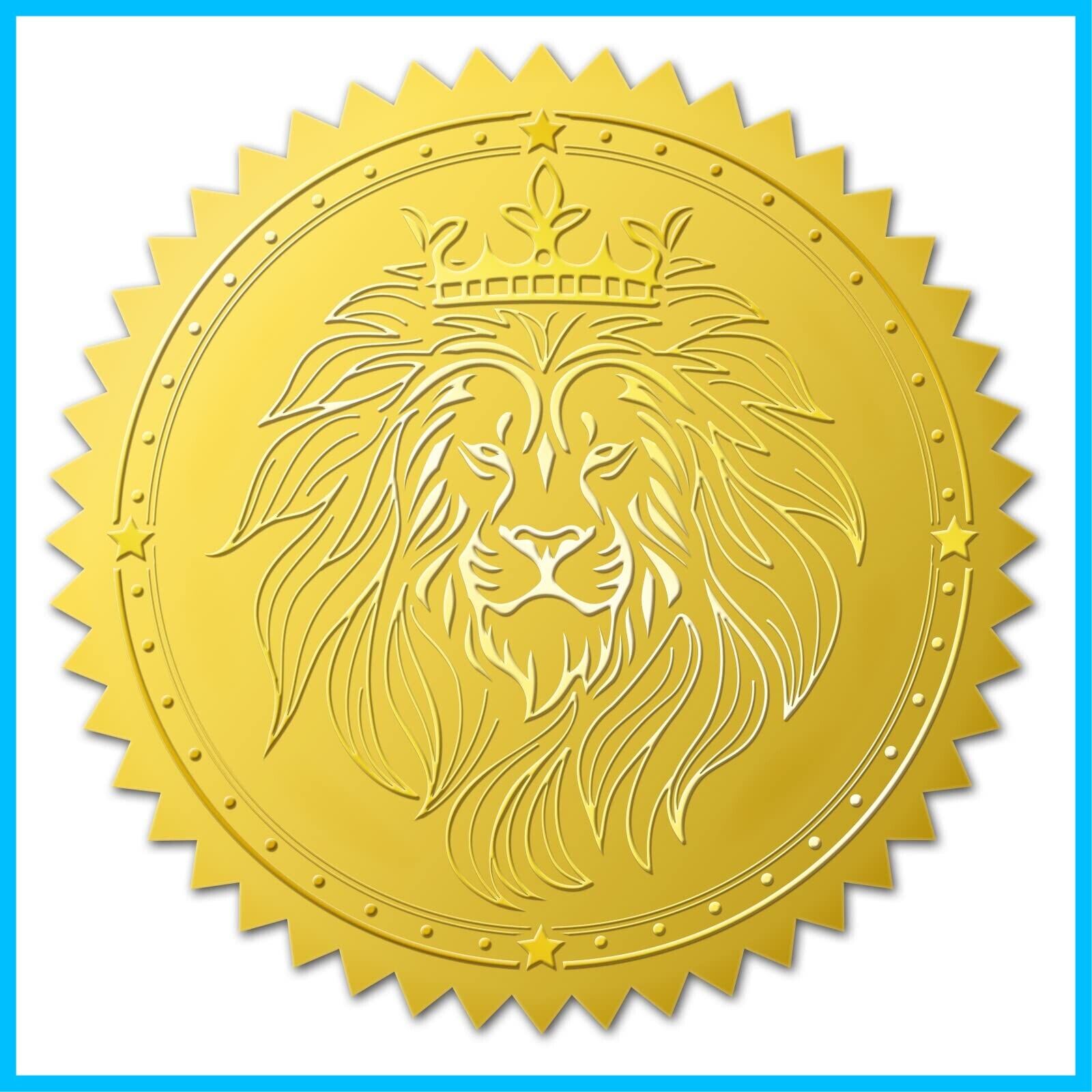 BENECREAT 100枚 ステッカー ライオン 金箔エンボス加工 豪华 招待状 封筒 証書 賞状 飾り ごほうびシール メダル 金