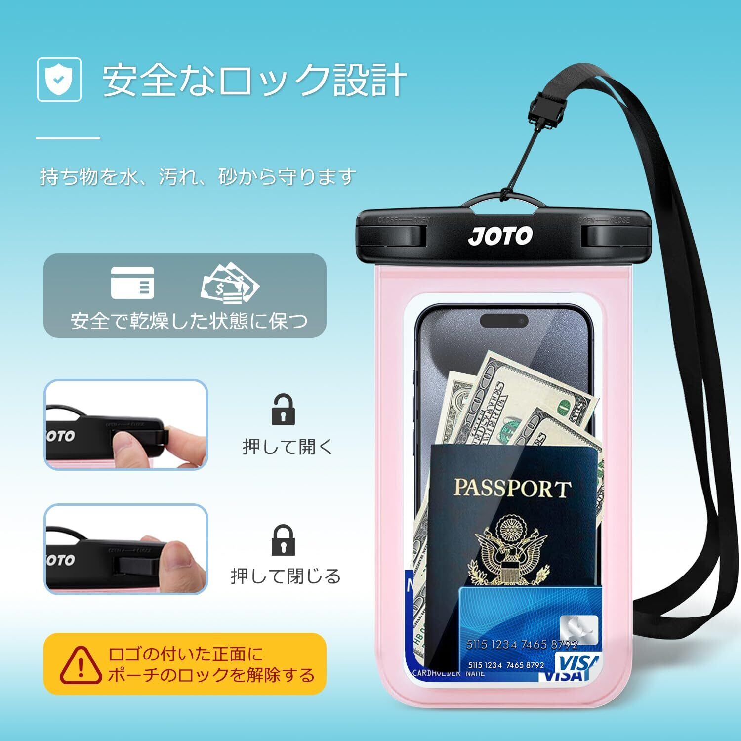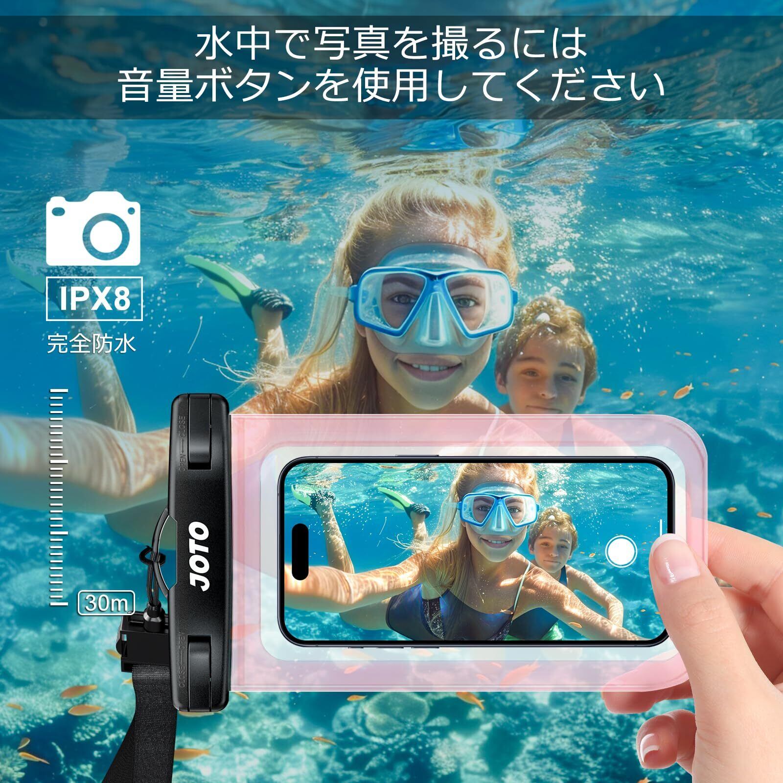 JOTO 防水スマホケース IPX8認定 お風呂 海 プール 温泉 首掛け式 ドライバッグ 登山 お釣り時の防塵・防水対策 最大7.0”スマホに対応可能 適用端末:iPhone 17 16 15 14 13 12 Mini Pro Max Galaxy S24 Xiaomi Pixel -クリアーピンク