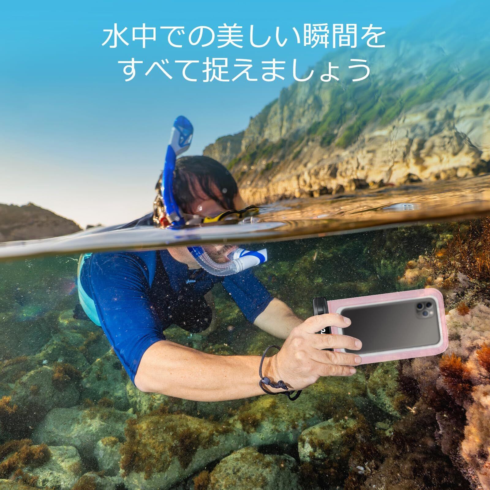 材質: 高透明度のビニール素材を採用しており、水中でも鮮明な写真や動画の撮影が可能です。高感度の防水膜によって、タッチ操作の感度を妨げることなくスムーズな操作を実現します