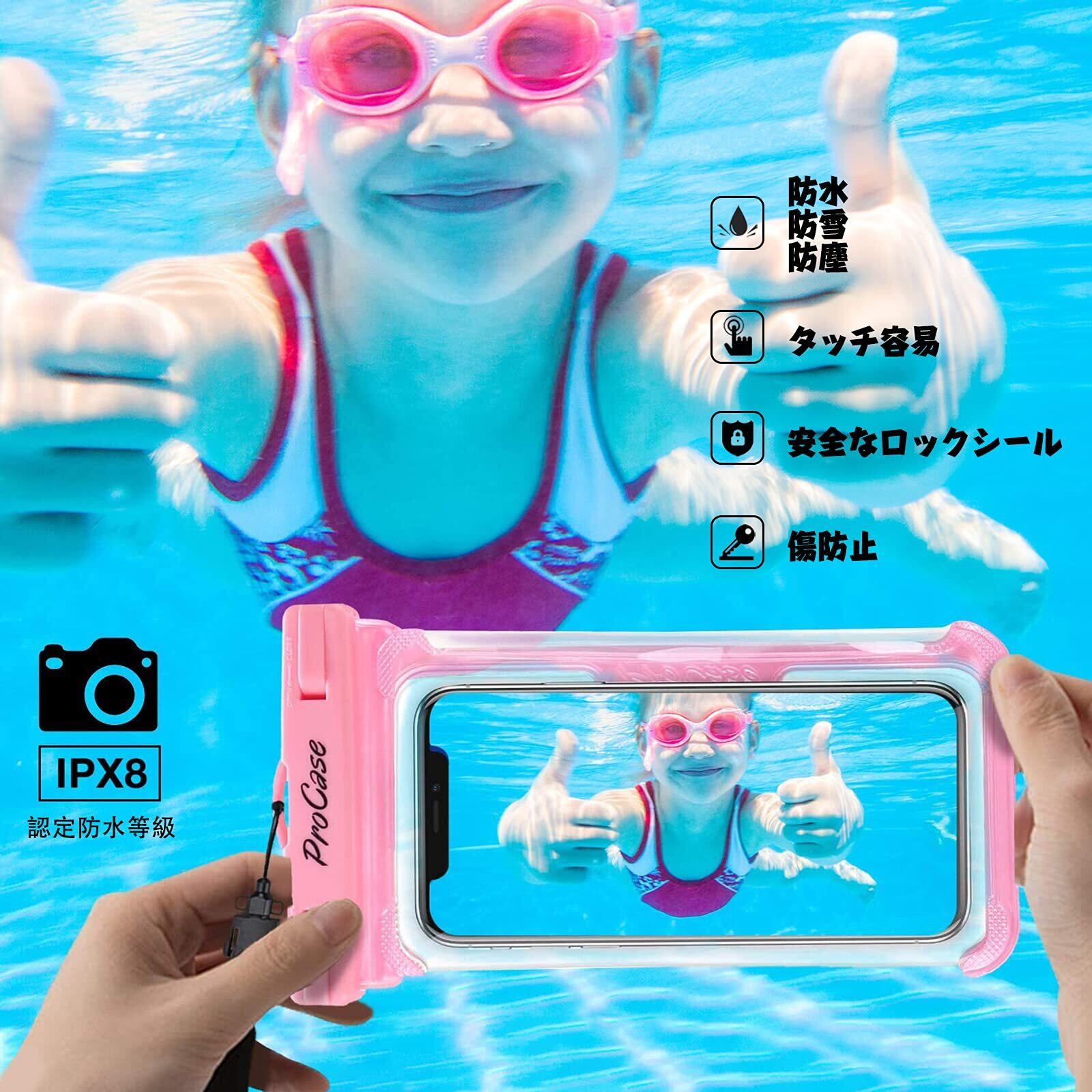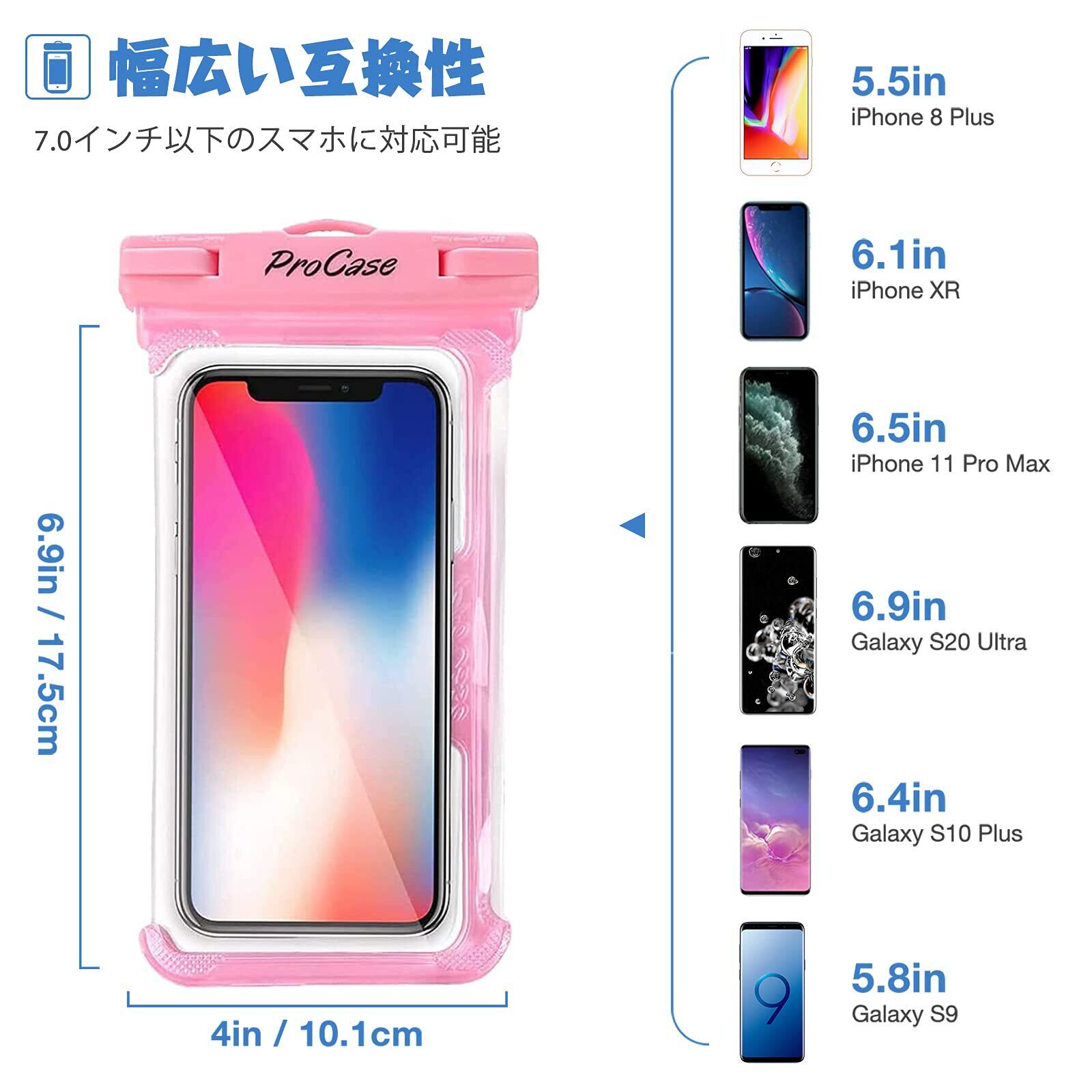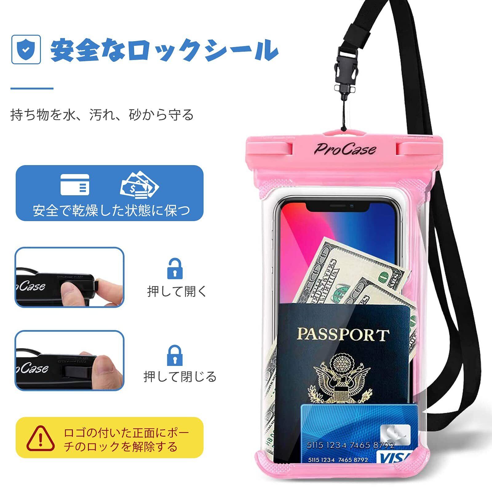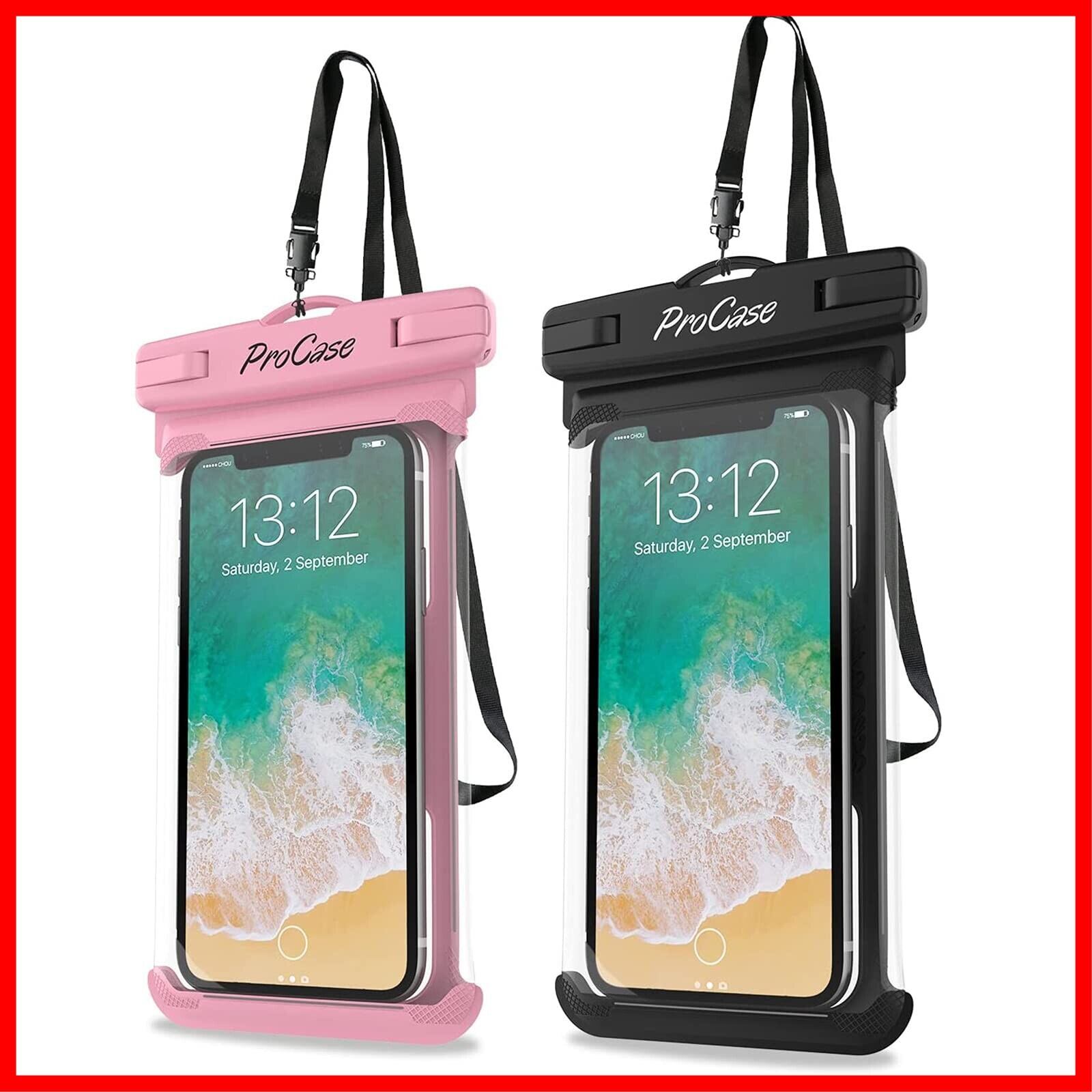 ProCase 防水スマホケース 2個 IPX8認定 お風呂 海 プール 温泉 首掛け式 ドライバッグ 登山 お釣り時の防塵・防水対策 適用端末:iPhone 17 16 15 14 13 Mini Pro Max Huawei Xperia android -ピンク/ブラック