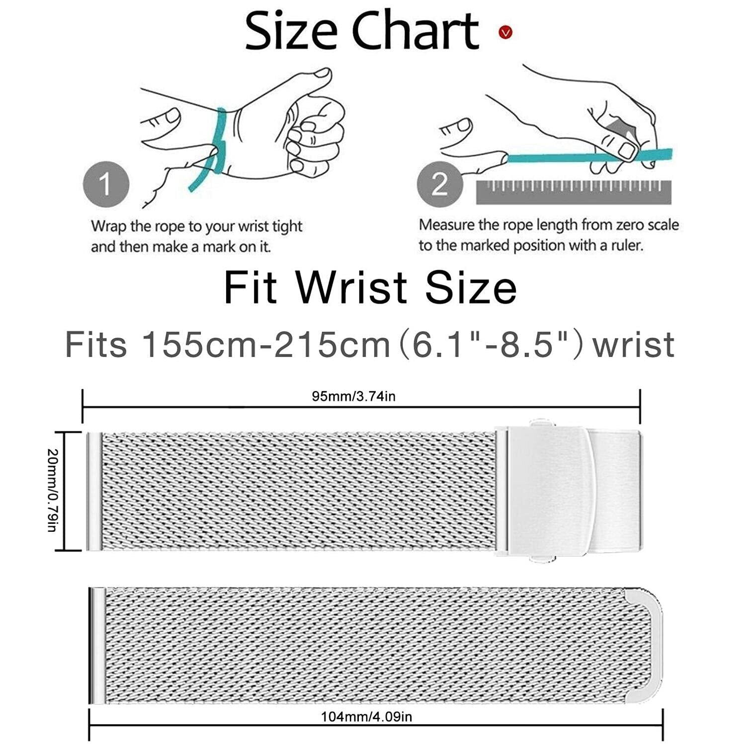▲調節可能で折りたたみ可能なメタルクラスプデザインで、手首の長さをしっかりと簡単に保持し、手首のサイズ135mm〜210mmにフィットします