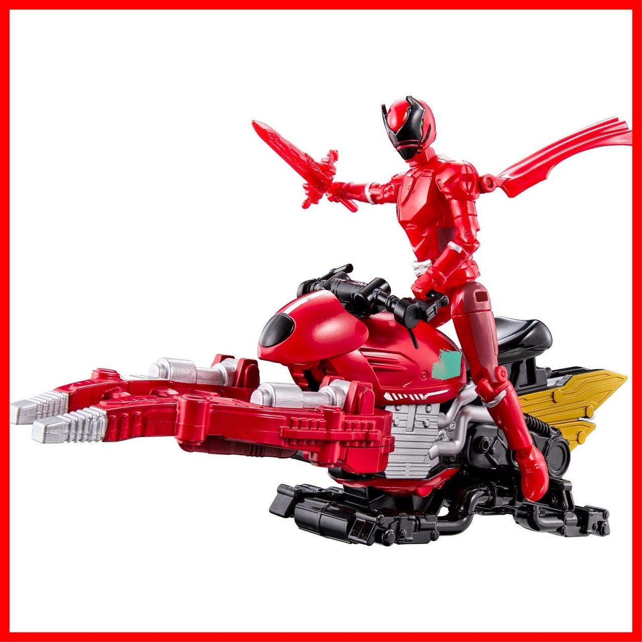 キングスピーダーは前方のパーツが走行に連動して動くギミックを内蔵しており、クワガタオージャーや別売りのアクションヒーローシリーズを乗せる玩具オリジナルの遊びを楽しめます。