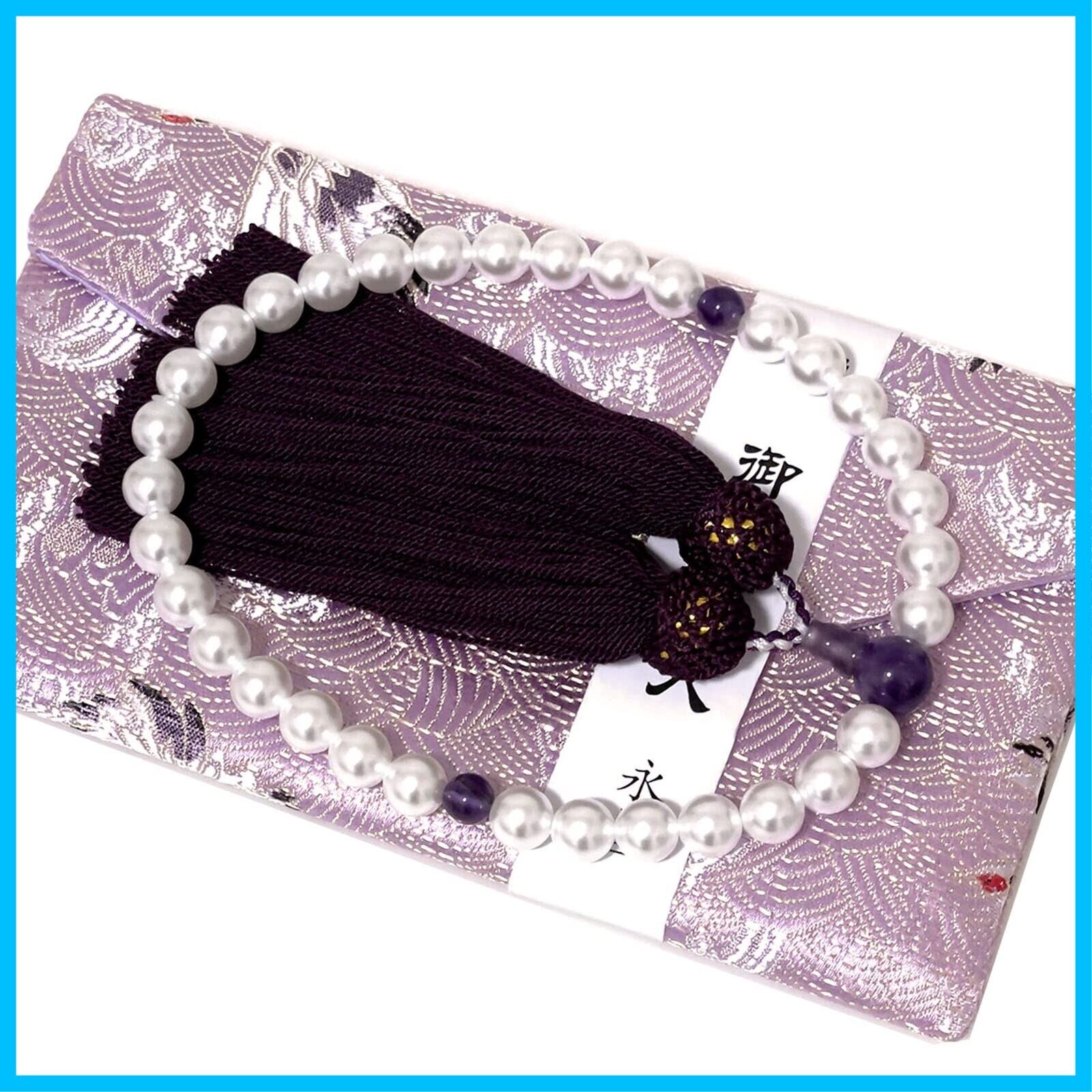永善念珠屋 数珠 女性用 貝パール紫水晶 人絹頭房 全ての宗派で使える 念珠 手作り 仏具 記念品 葬儀 法事 (紫水晶)