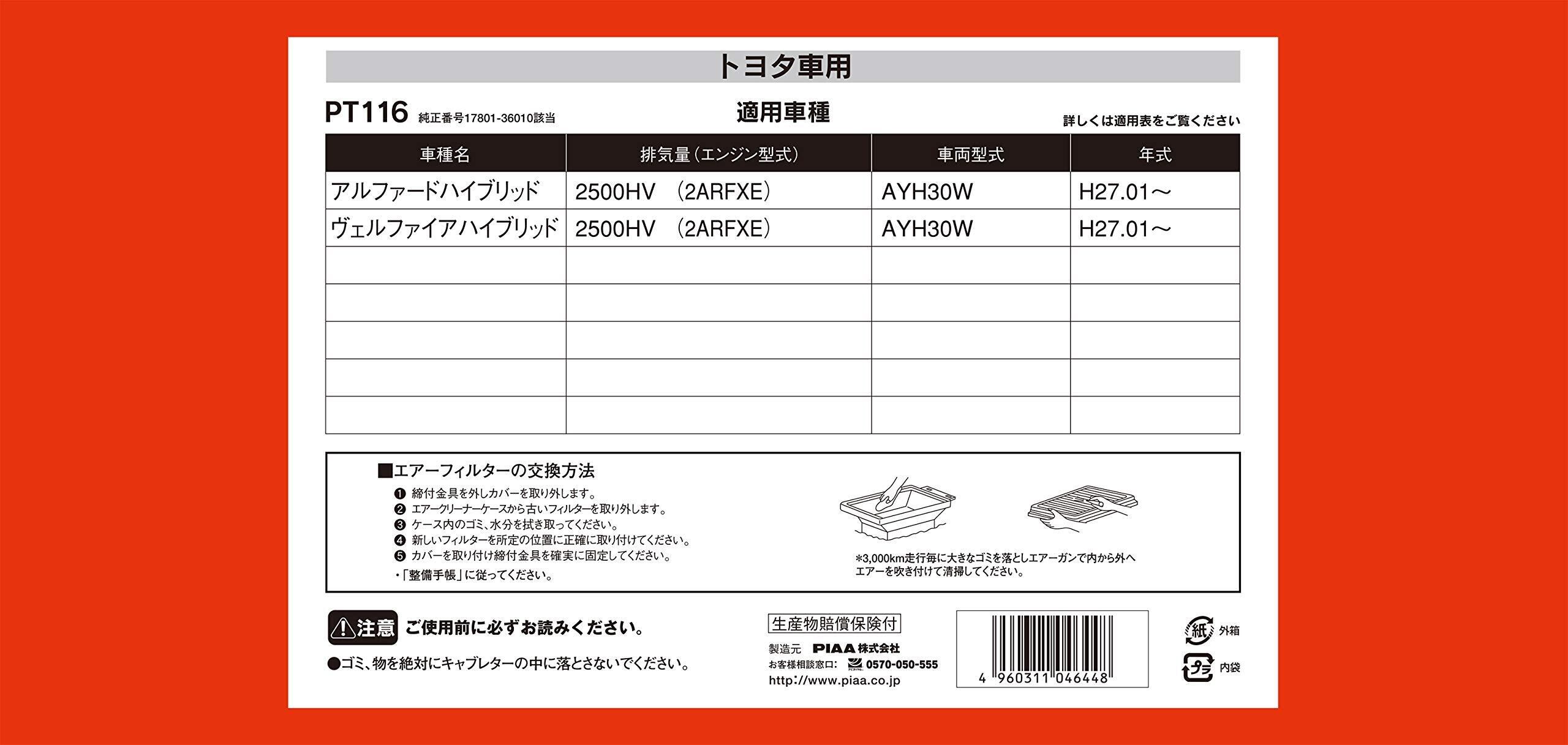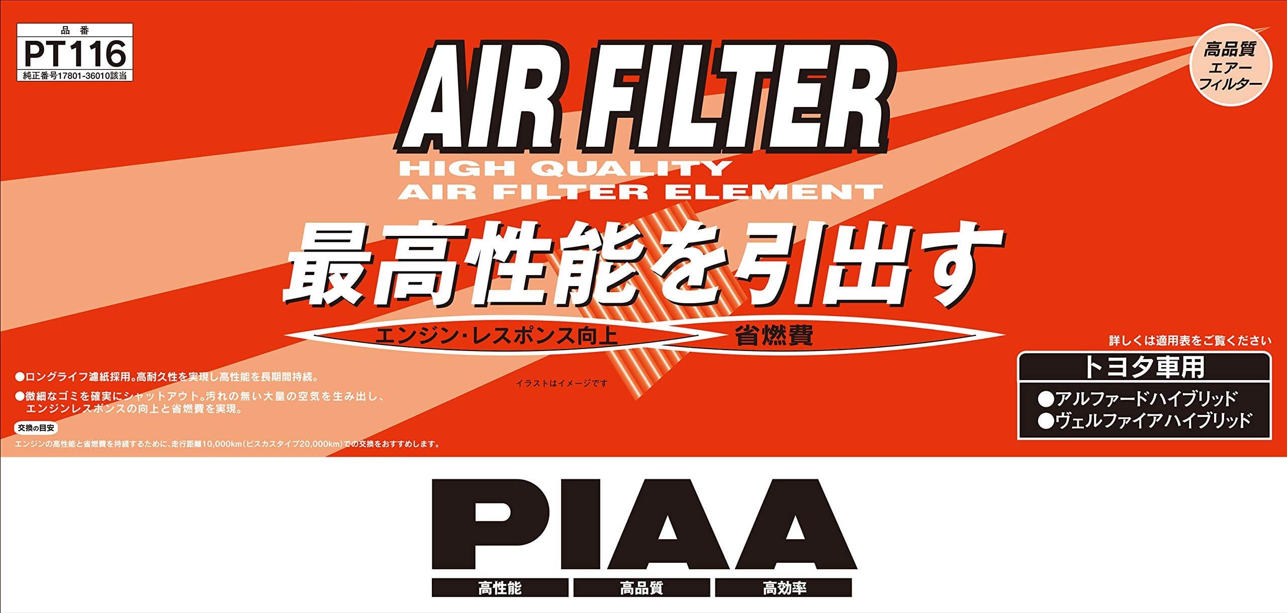 PIAA(ピア) 車用 エアーフィルター 1個入 アルファード・ヴェルファイア_他 PT116