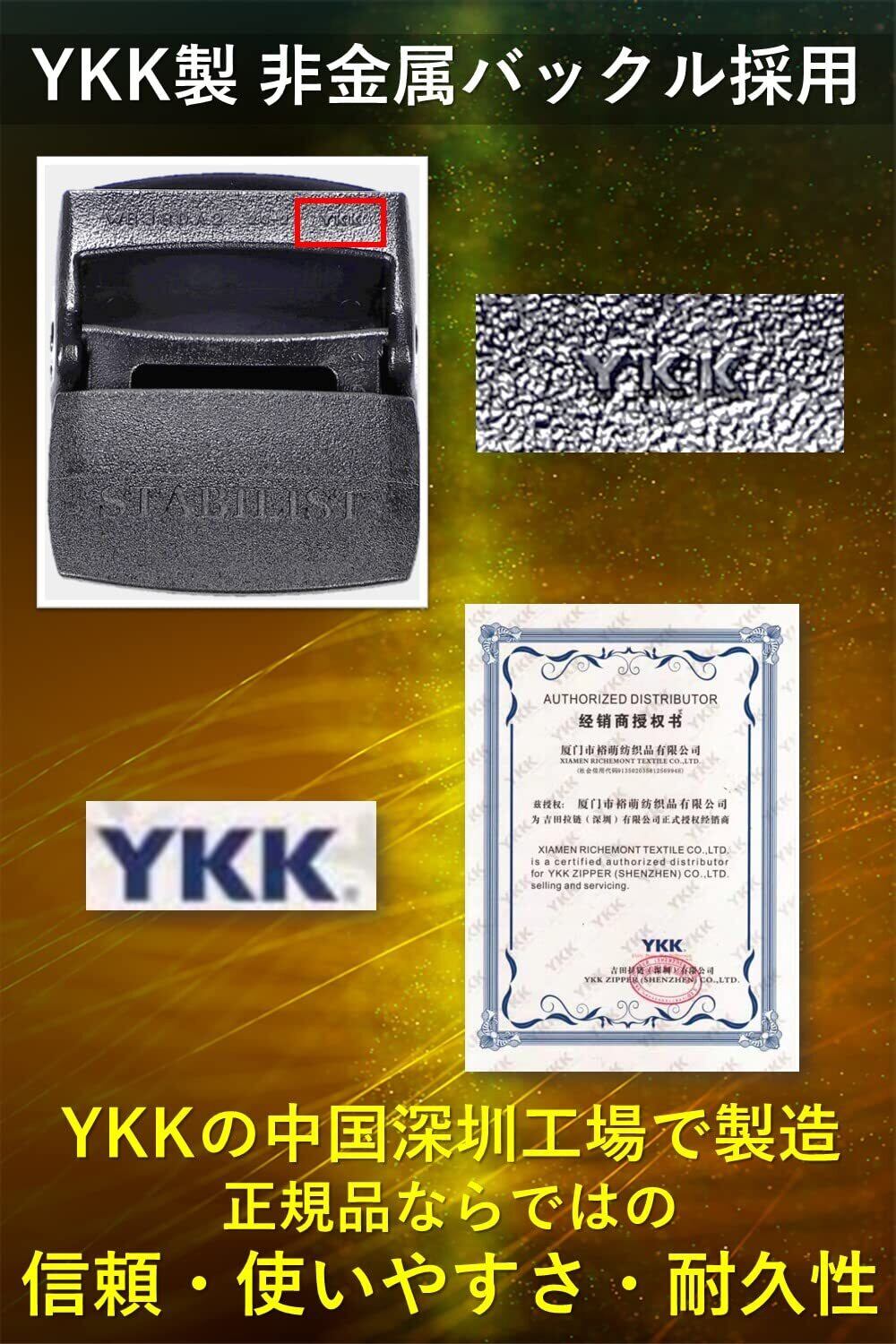 YKK製バックル採用:中国のYKK工場で製造した正規品を使用、信頼と実績の証です