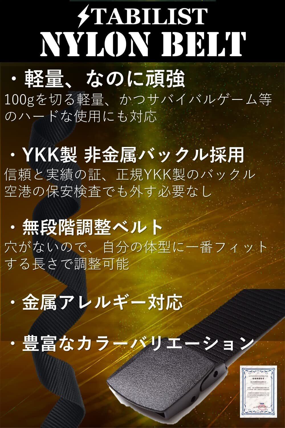 高性能素材:ベルト部分は 布 より耐久性が高い高品質ナイロンを使用。またバックル部分はYKK製の強化樹脂で仕上げました