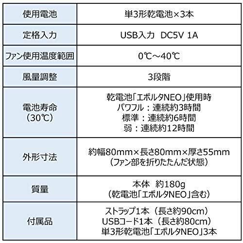 パナソニック 携帯扇風機 パーソナルファン 乾電池式 USB給電可 首掛け可 乾電池エボルタNEO付 ストラップ付 BH-BZ10/TP