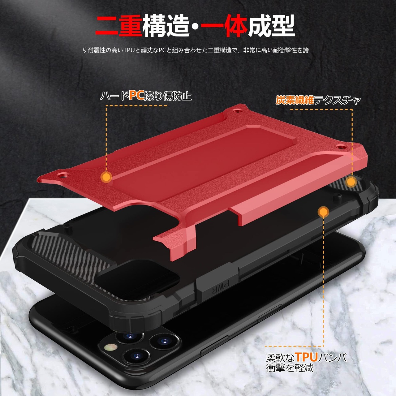 WZOYXOC と互換性のある iPhone 7 用の ケース 耐衝撃 PC 対応 落下衝撃吸収 TPU スマホ 防塵 アイフォン7 ケース 米軍MIL規格 軽量 薄型 擦り傷防止 取り出し易い 携帯カバー 落下防止 超耐久 おしゃれ 人気 オシャレ 赤 RP12-7G-HON-01
