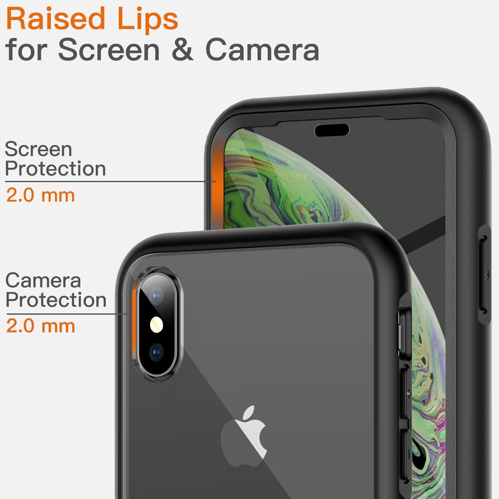 JETech iPhone XS と iPhone X (5.8インチ専用) ケース 液晶保護フィルム内蔵 傷つけ防止 フルボディ 360°全面 保護カバー クリアバック (ブラック)