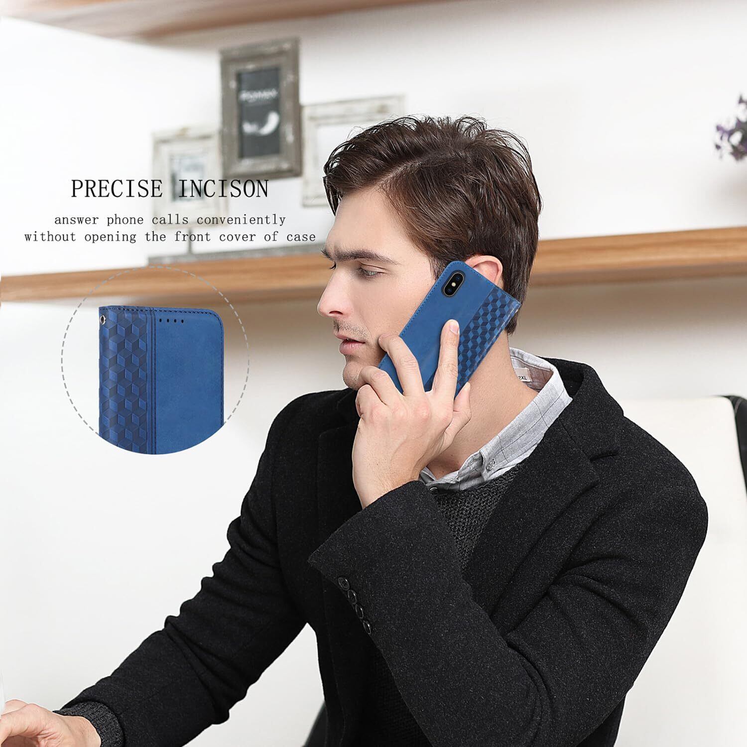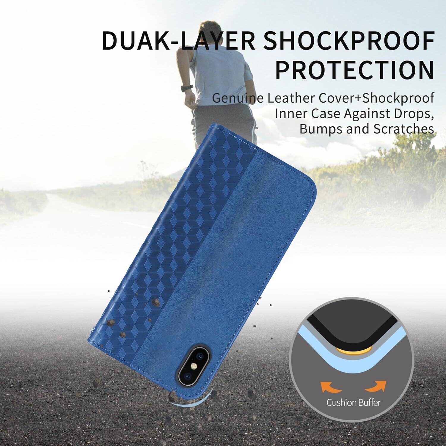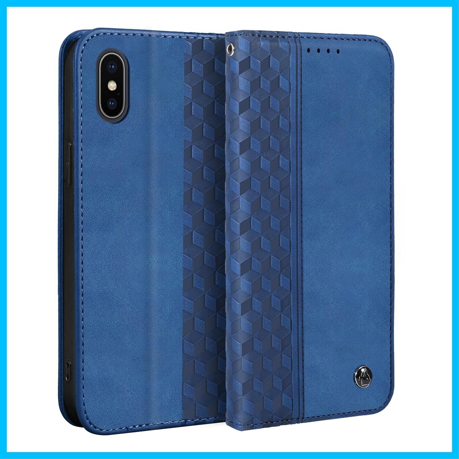 Gedurya iPhone XS ケース 手帳型 iPhone X ケース アイフォンxs 用 手帳型ケース あいふおんx 携帯カバー いphonexs スマホケース 5.8インチ対応 ひし形柄 全面保護 耐衝撃 カード収納 財布型 スタンド機能 マグネット式 軽量 - ブルー