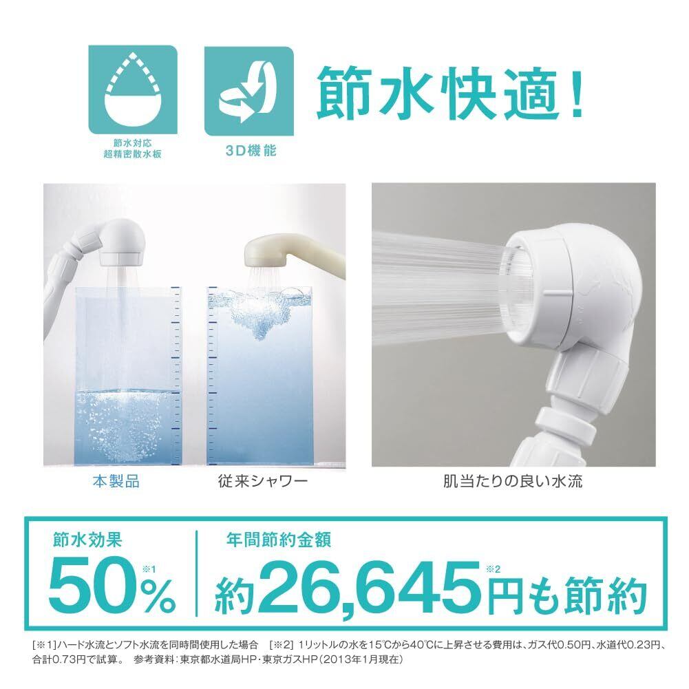 節水効果50%を実現。水道代だけでなく、湯沸かしで給湯器にかかるガス代や電気代等も節約になります。
