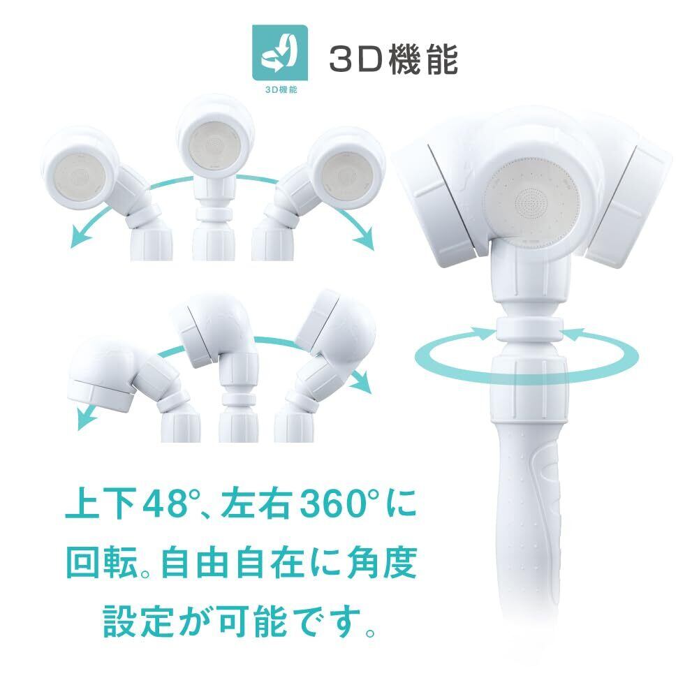 アラミック シャワーヘッド 節水シャワー 3Dアースシャワー 角度調整 増圧 節水 最大50% ホワイト 日本製 3D-A1AA
