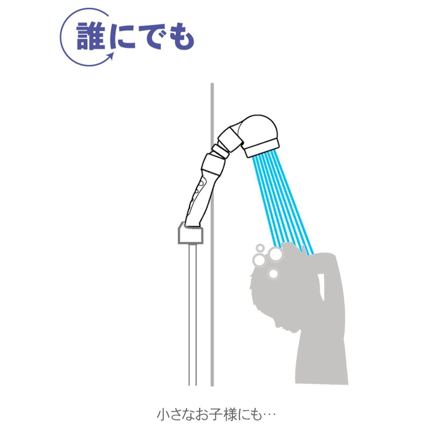 シャワーの散水位置に体を合わせるのではなく、浴びたい位置や洗いたいところにシャワーの水流が当たるように調節できる、新しいシャワー。これまでのシャワーの不便さを解消しました。