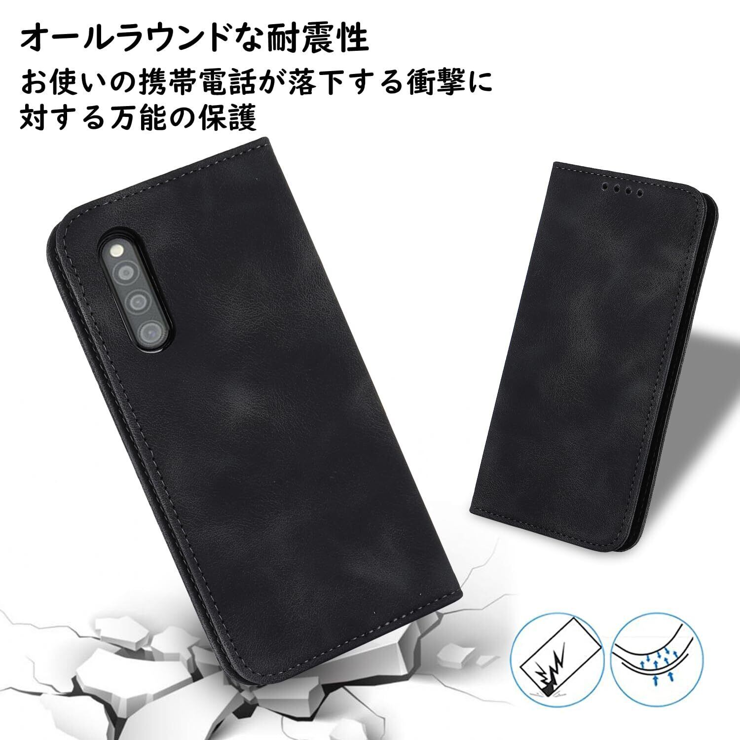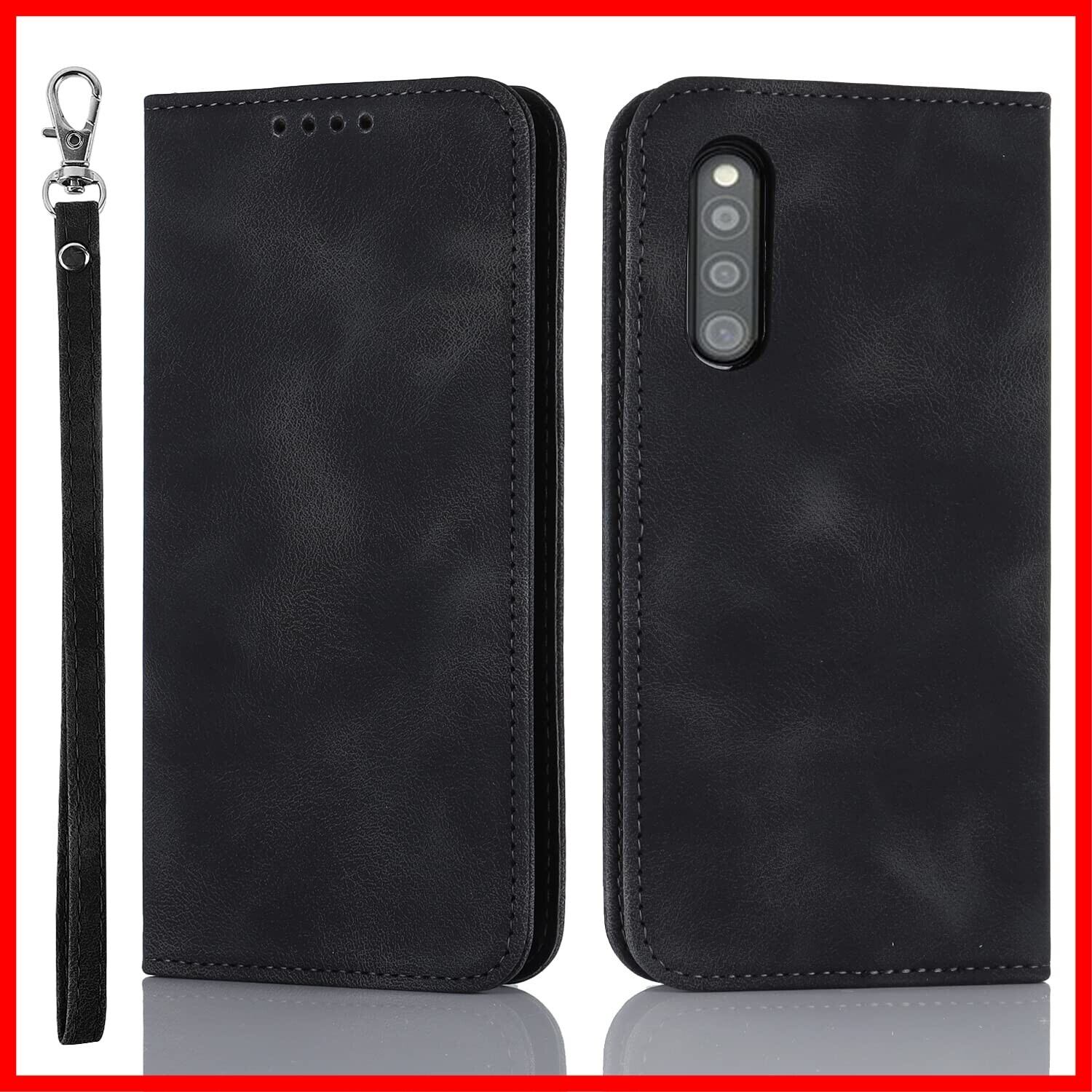 Havaya 対応 Galaxy A41 ケース ギャラクシーa41 ケース au SCV48 スマホケース SC-41A docomo 手帳型 ストラップ UQmobile カバー 耐衝撃 ドコモ サムスン カード収納 SoftBank レザー スエードの質感-ブラック