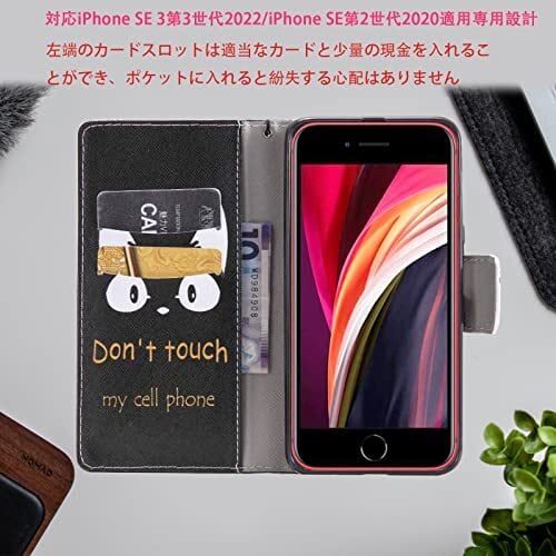 PCduoduo 対応iPhone SE 第3世代 2022 用のと互換性のケース スマホケース 手帳型 ケース対応 iPhone SE 第3世代 / iPhone SE 第2世代 2020 と互換性の用のカバー 猫 ストラップホール付きスタンド機能付き スマホカバー 財布型 マグネット付き シンプル カード収納 耐衝撃