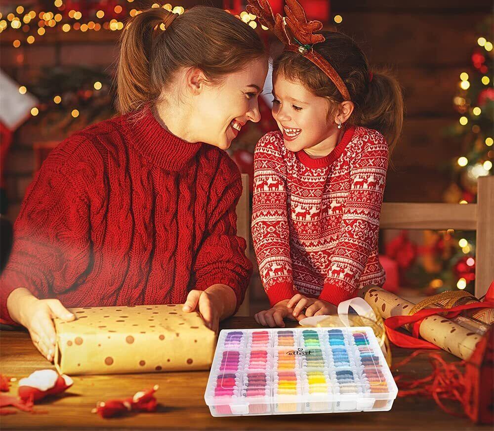 TuxFezug 刺繍キット ししゅう糸 収納 セット 108色 金銀付き 手作り クロスステッチ 初心者向け DIY ししゅう枠 刺しゅう針 糸通し 刺繍用布 はさみ おしゃれ 贈り物 収納ケース付き
