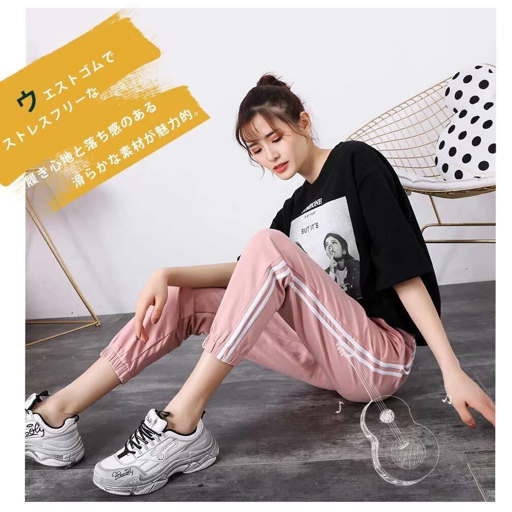 Muxuryee ジャージ レディース 下 サイドライン ジョガーパンツ スポーツウェア レディース スウェット カジュアル 046PK L