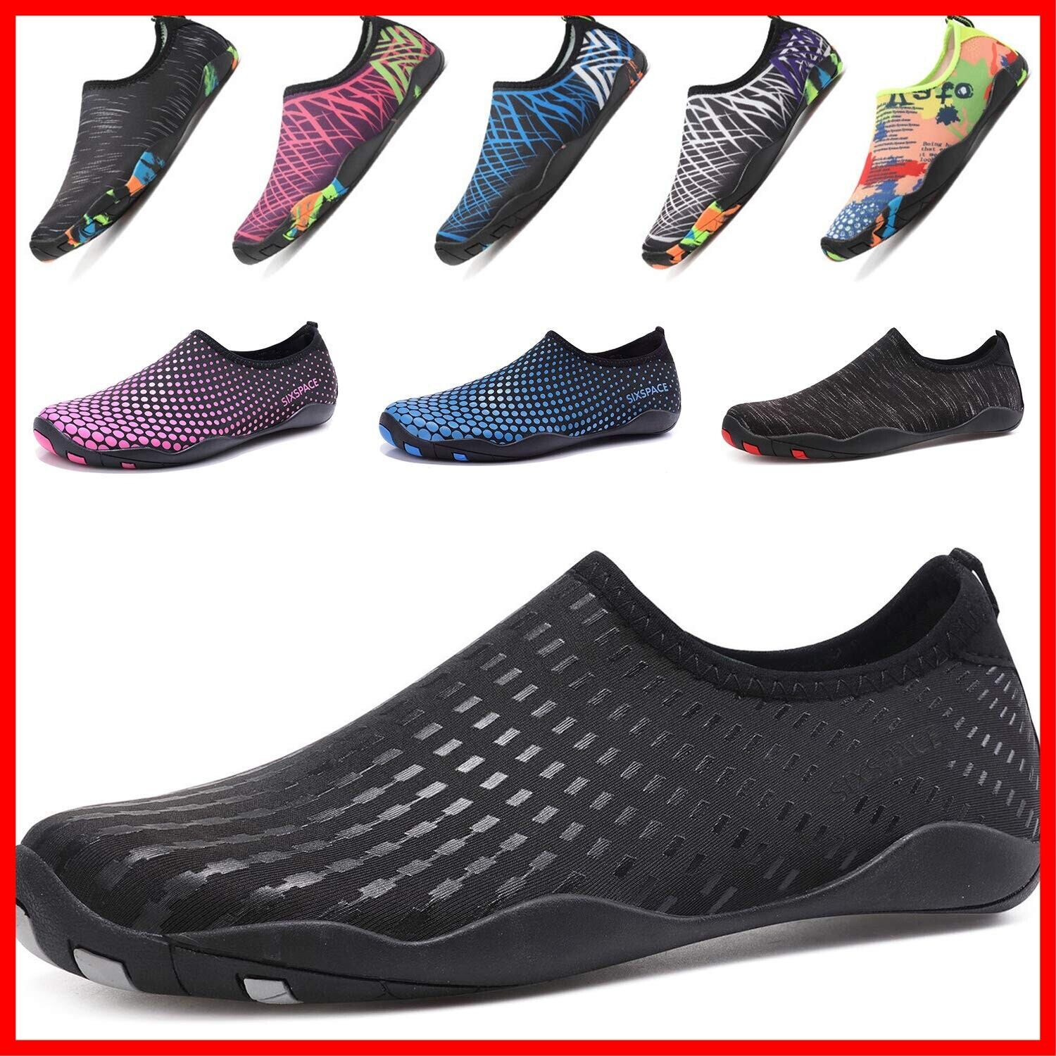 Sixspace マリンシューズ ウォーターシューズ 水陸両用 アクアシューズ シュノーケリング ビーチシューズ 軽量 通気 ヨガ サーフィン 男女兼用 黒 22cm