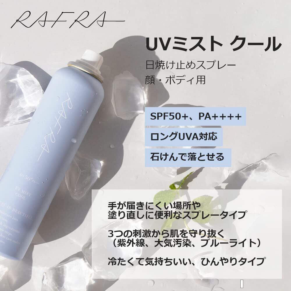 ラフラ 日焼け止めスプレー 100g UVミストクール SPF50+ PA++++ (クールタイプ ロングUVA対応 日焼け止め スプレー 顔用 全身用 汗に強い 子供)