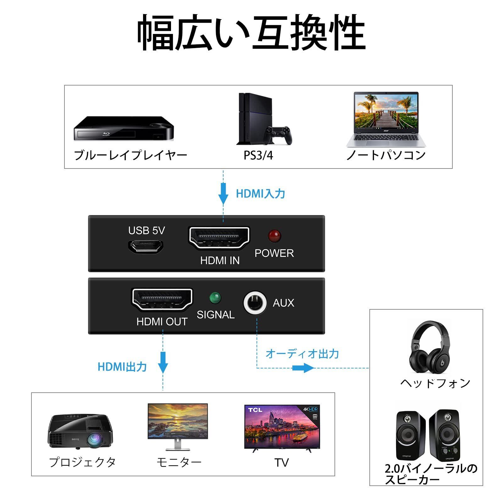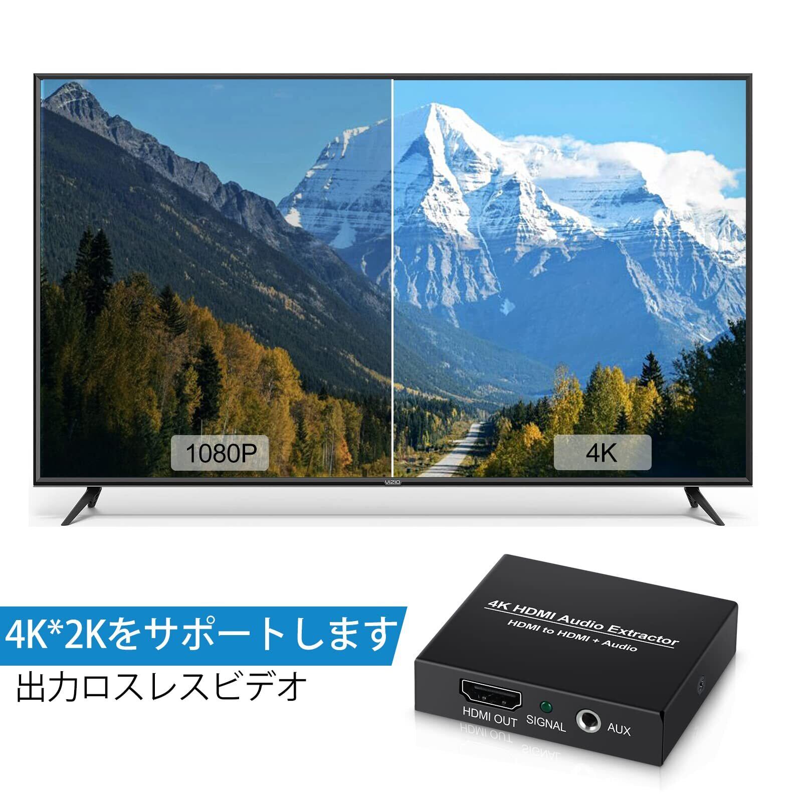 avedio links HDMI 音声分離器4K 抽出器 HDMIオーディオ分離器HDMIからHDMI + 3.5mmオーディオ出力 ノートパソコン/ブルーレイプレーヤー/Fire Stick/PS5/4/3に対応 USBケーブル付き