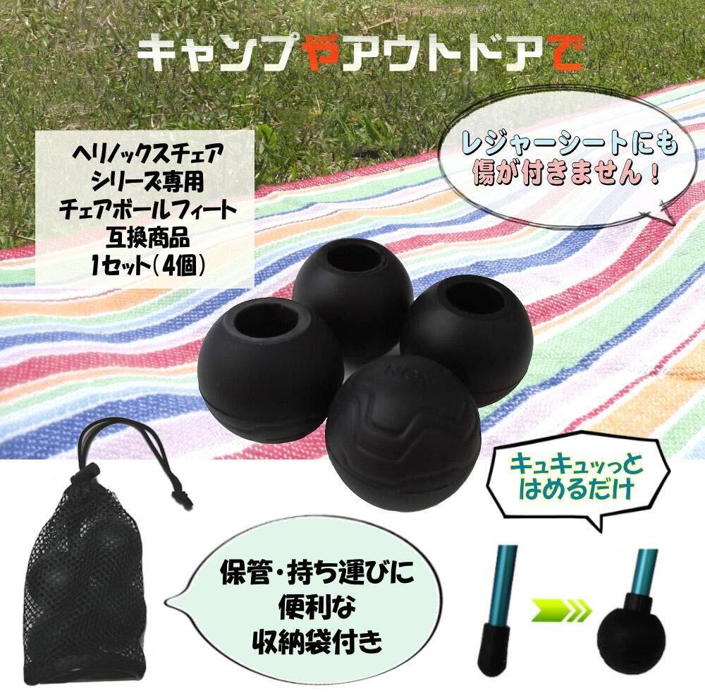 長野アウトドアスタイルが作ったヘリノックスチェアシリーズ専用のボールフィートの互換商品です。 チェアの脚に取り付け、砂地などの柔らかい地面で脚を沈み込みにくくします。 また、フローリングの床やカーペットが傷つくのを防ぎ、使用中に椅子が滑るなど、滑り止めの効果もあります。