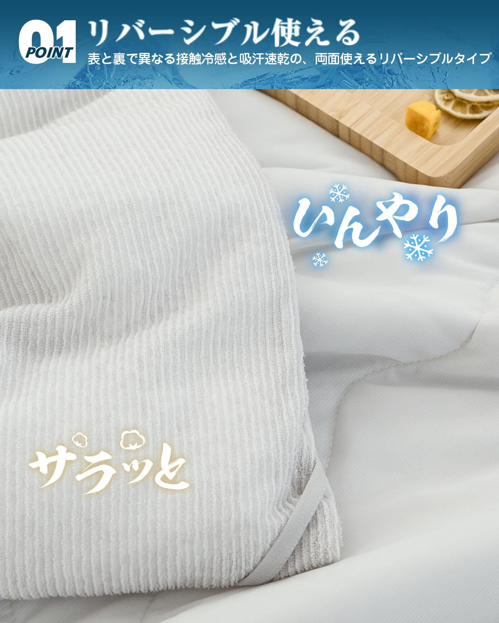 【リバーシブル】冷感&タオル地:寝返りのたびに心地良いひんやり感が伝わり、寝苦しい夜にもひんやりとした感触をお楽しみいただけます。冷房との併用でさらにひんやり!やわらかパイルの素材を使用していますので、吸湿・速乾・通気!汗をかきやすい夏でもさらっとして快適にご使用いただけます。