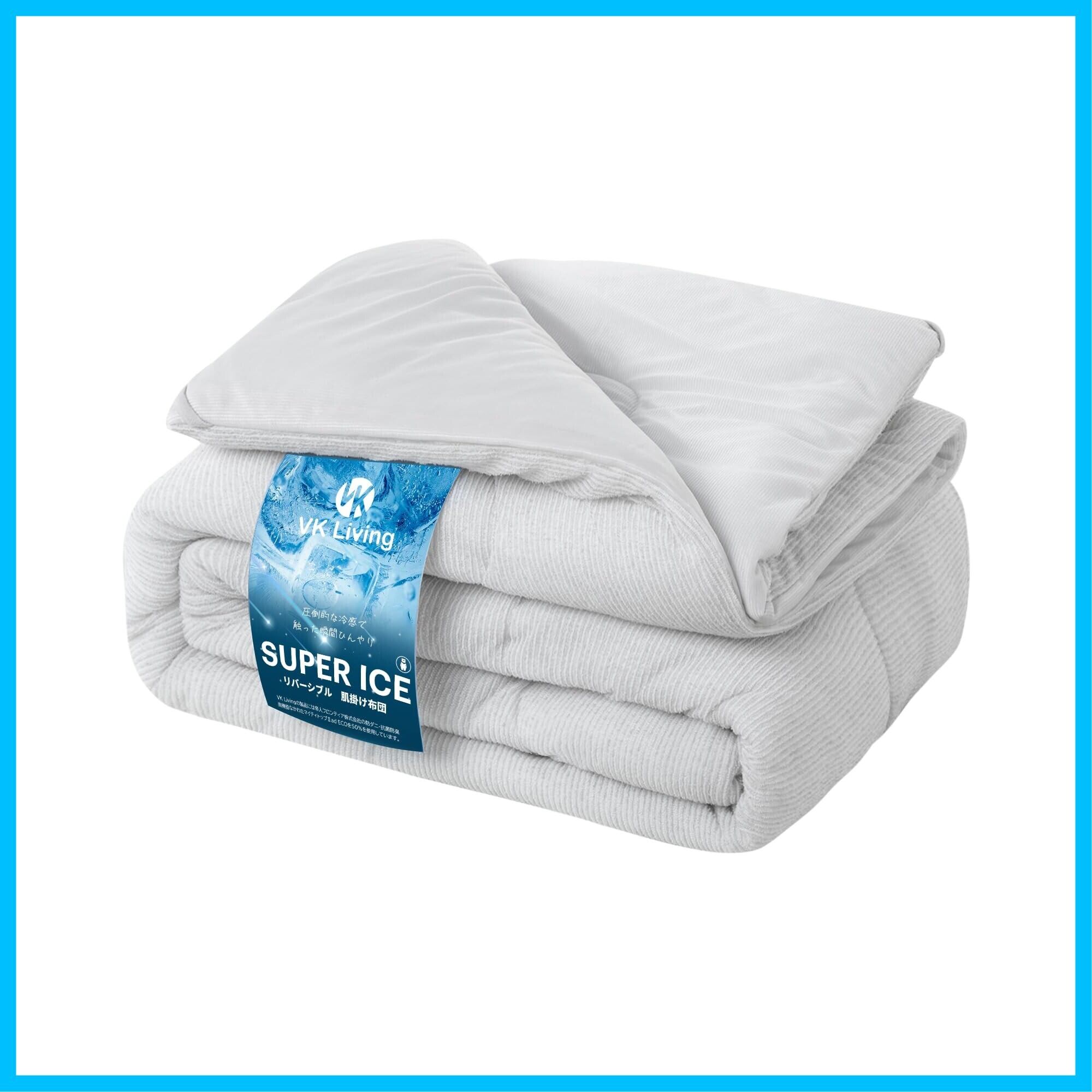 VK Living 夏用掛け布団 肌掛け布団 シングル リバーシブル 冷感&タオル地 接触冷感 24時間持続制菌消臭 二重除湿速乾 抗菌防臭 防ダニ 洗える かけ布団 キルトケット 夏ふとん ひんやり 一年中使える 140×190cm ライトグレー