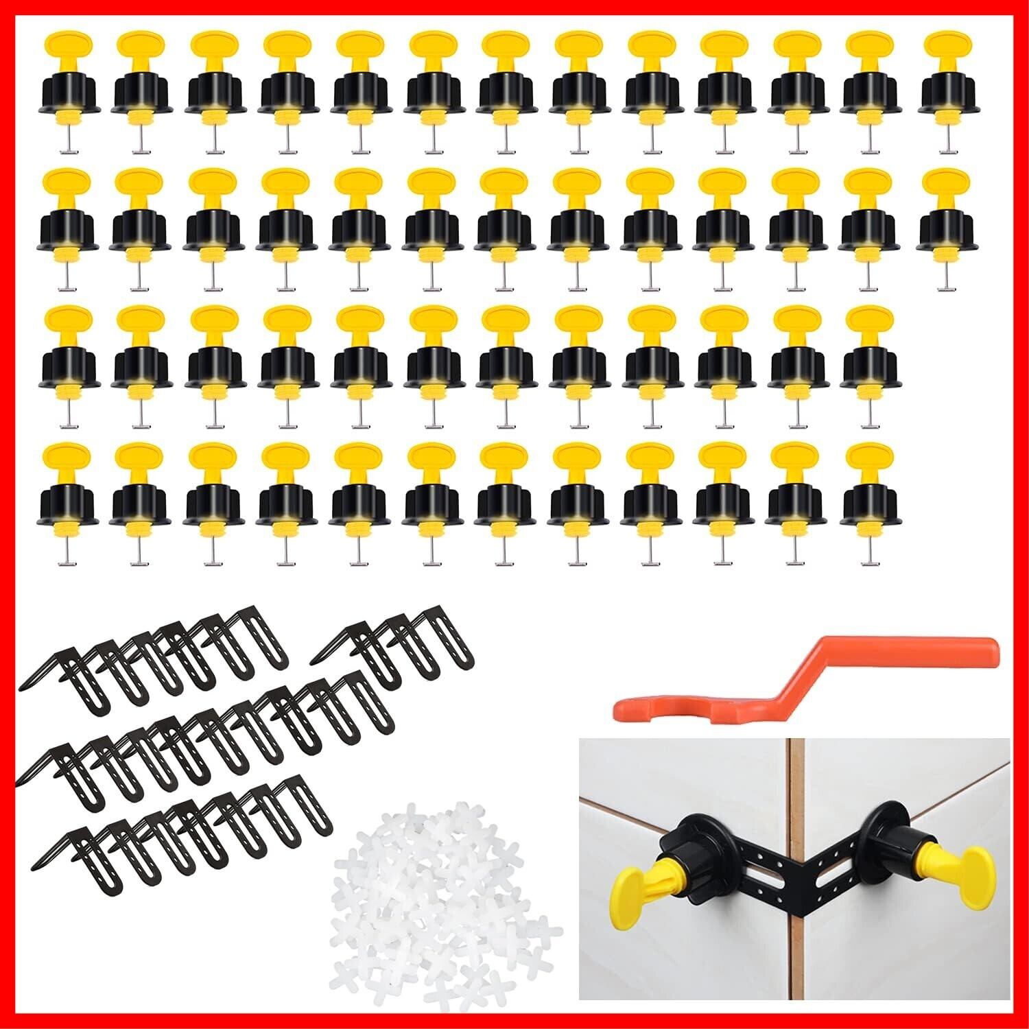 Namioka 特別なレンチを備えたタイルレベラーシステム タイル目地 スペーサー タイルクリップ レベリングクリップ 25の直角レベラーを備えた 再利用可能 設置ツール(50個セット)