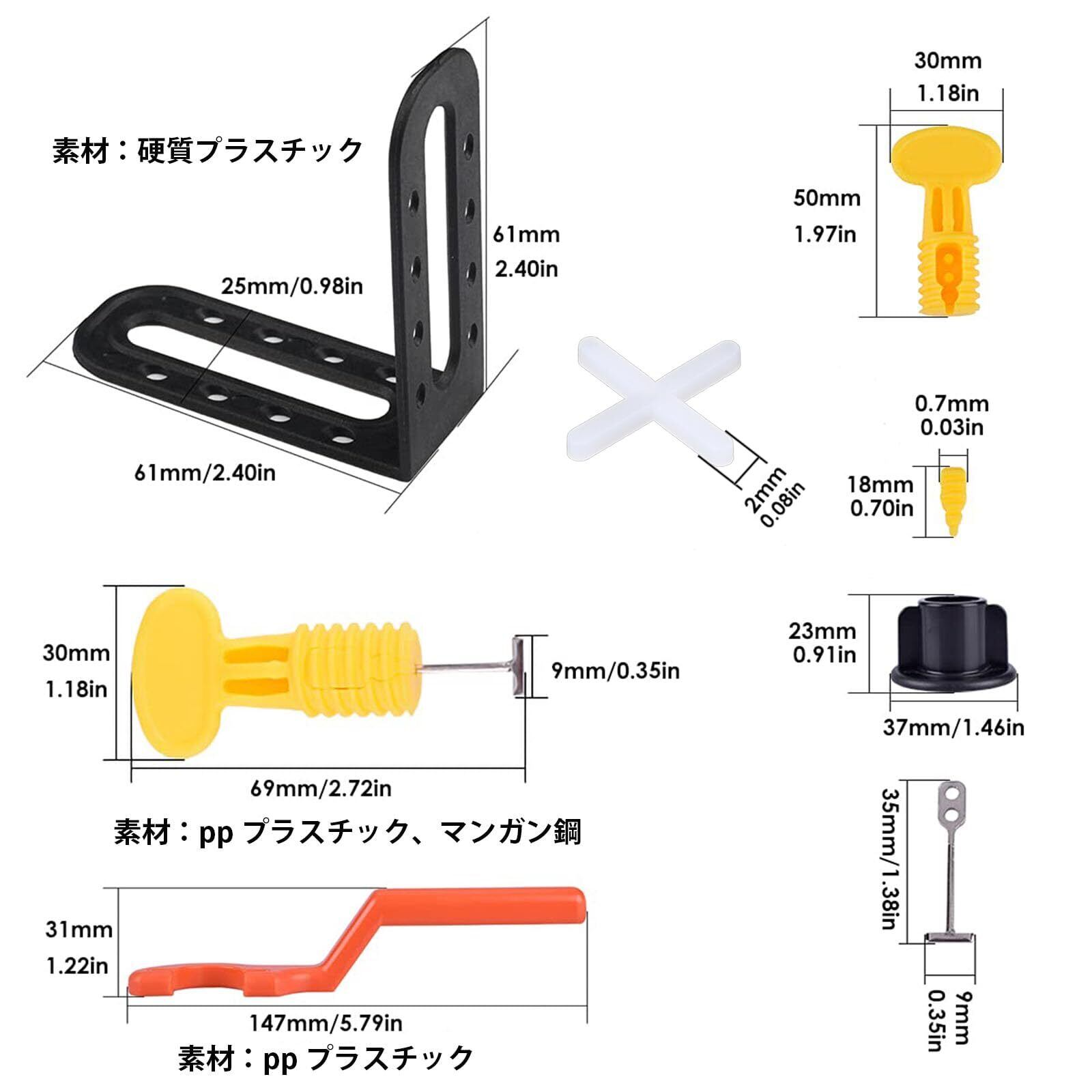 タイル設置効率アッ:タイルをインストールする場合など水平を保つ施工補助道具です。施工スピードがよくアップさせ、仕上げ品質も向上できます。調整用ペンチが付いているのでタイルとスペーサーとの位置を確認したら、ペンチで気軽に時計回りに捻ってしっかり固定できます。そして、4~6時間後、左回りに緩めてスペーサーを90°転じると、スペーサーを簡単に取り出せます.