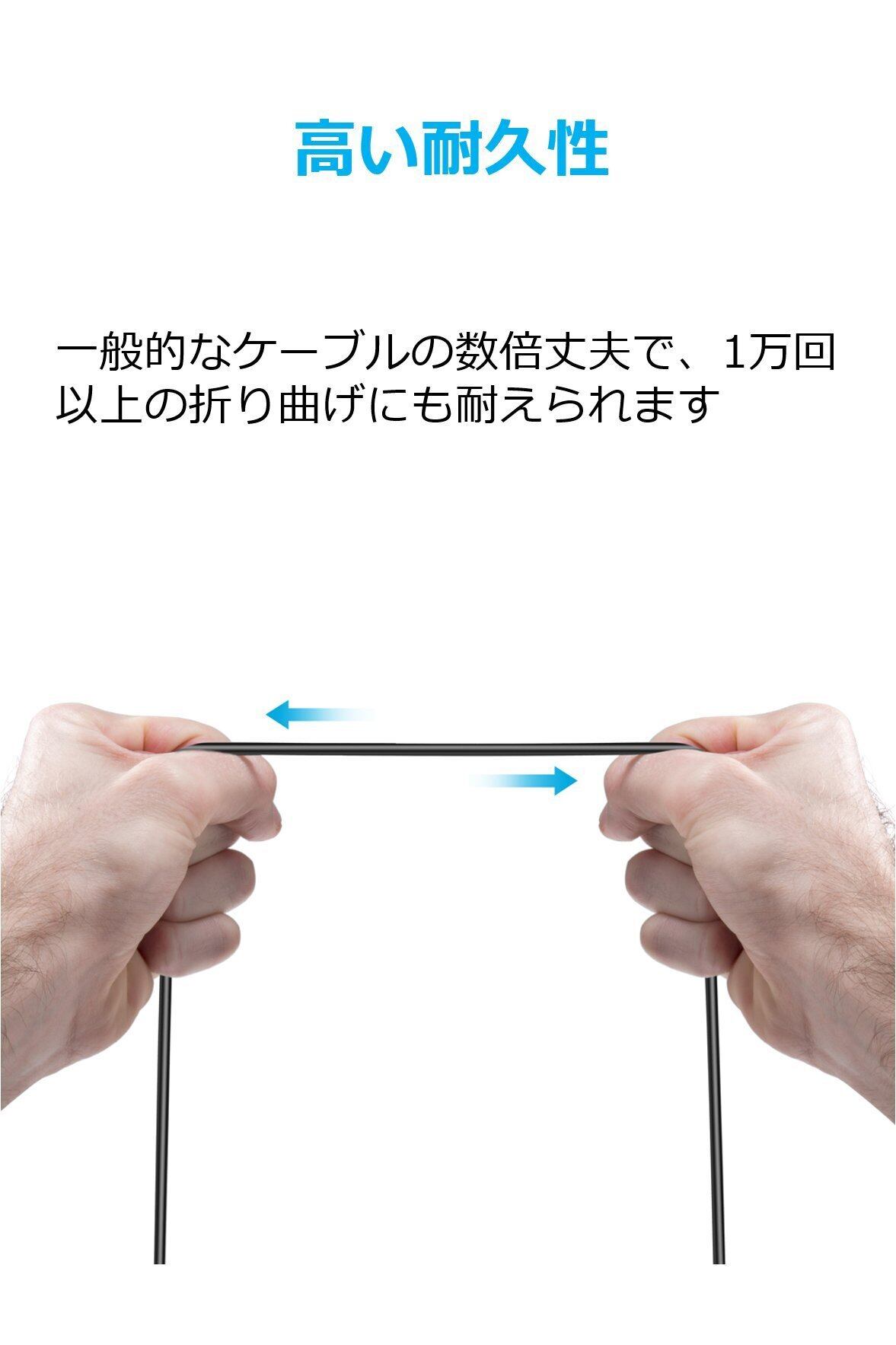 高い耐久性:製品寿命の内に1万回以上の折り曲げに耐えることができ、一般的な純正品のオーディオケーブルよりも数倍の寿命を誇ります。