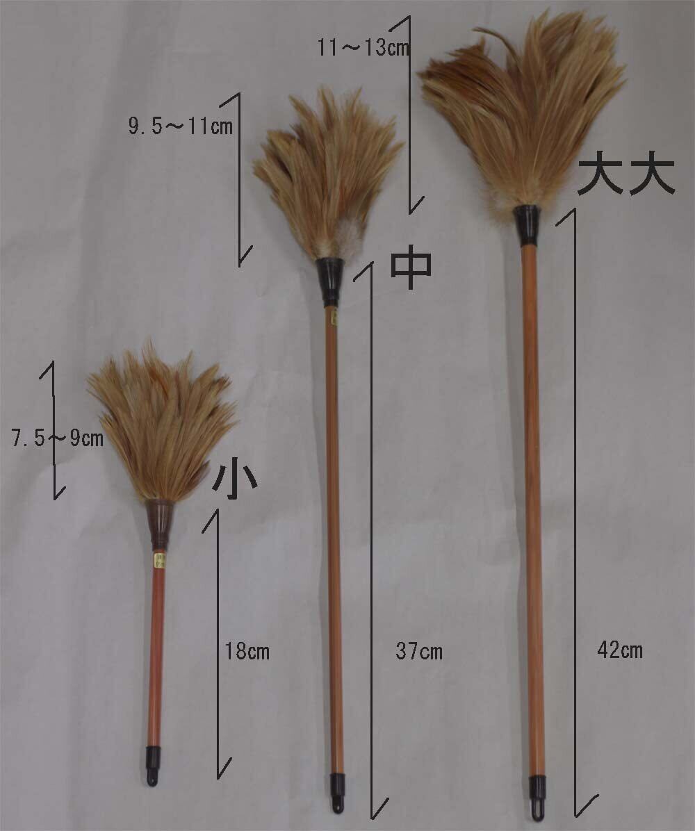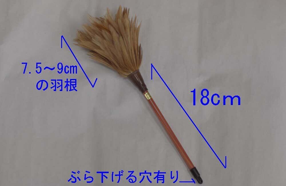 全長約25センチほど(柄の長さは18センチ) 羽毛のサイズは7~9cm バラつきあり