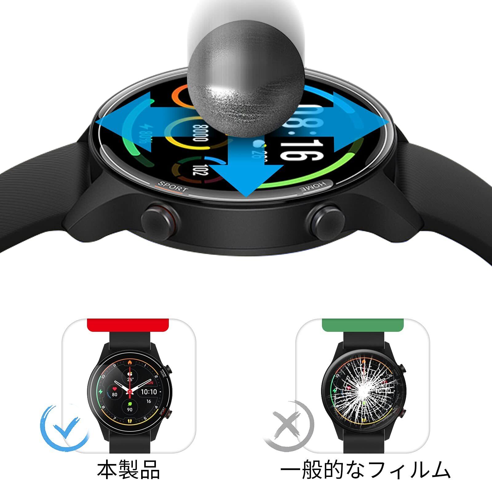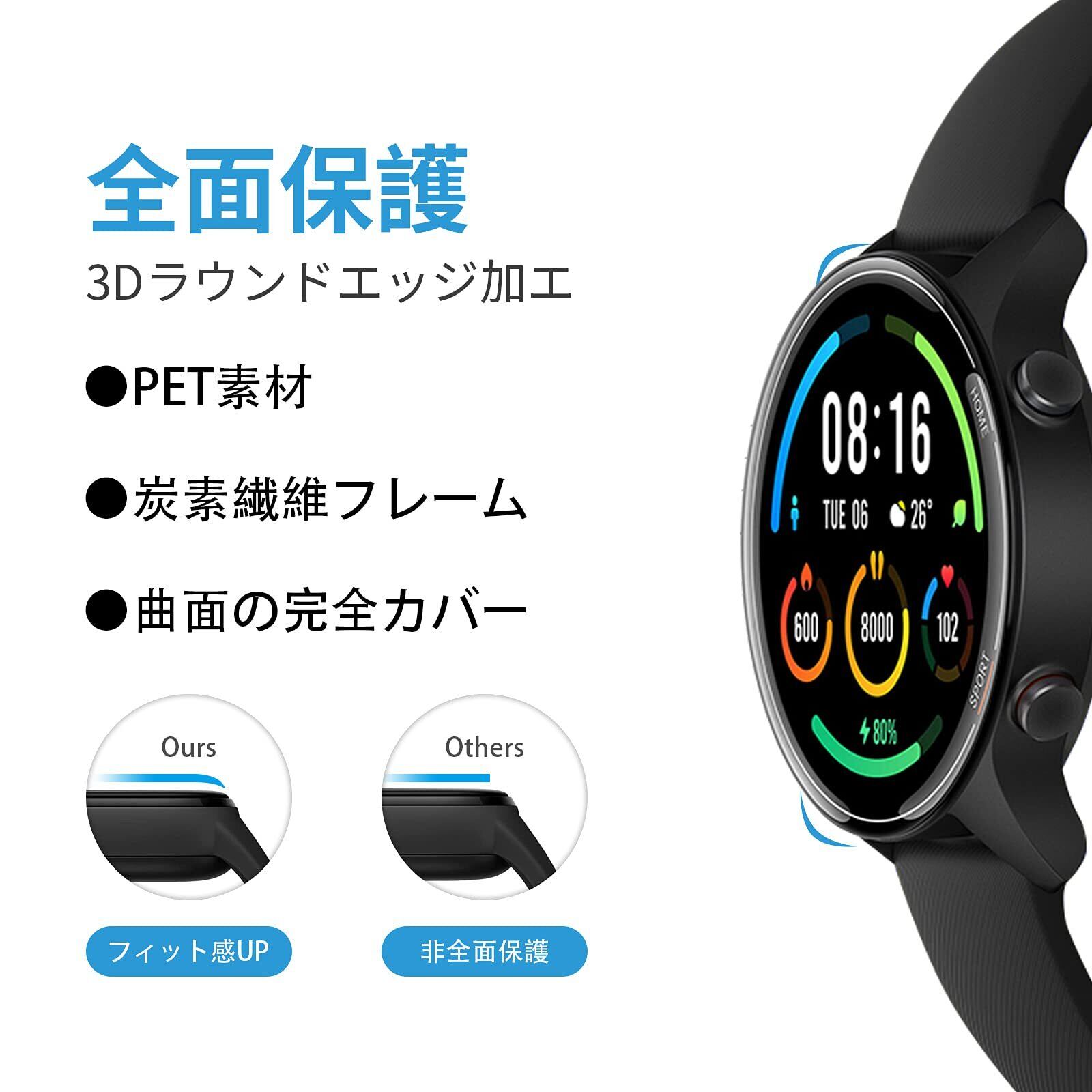 【3D曲面加工&全面保護】2021年の最新デザイン:Mi Watch 用炭素繊維フレーム一体型フィルム!PET素材と炭素繊維層の組み合わせ、保護機能を更に強化します。フレーム部分は「軽くて、強く、腐食しない」最先端技術の3Dラウンドエッジ加工により、 曲面の完全カバーを実現。割れにくいだけではなく、丈夫で変形しにくいです。液晶画面に当たる部分は柔らかいながら強度の強いPET素材で外部の衝撃からしっかり守ってくれます。