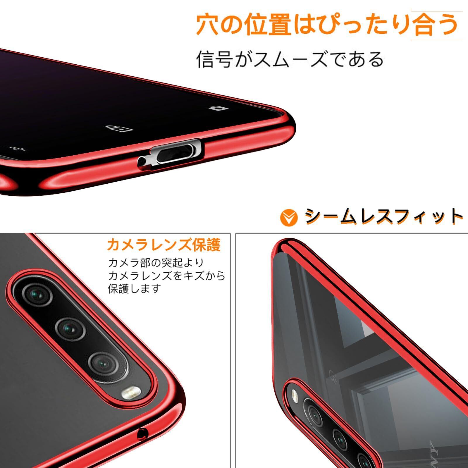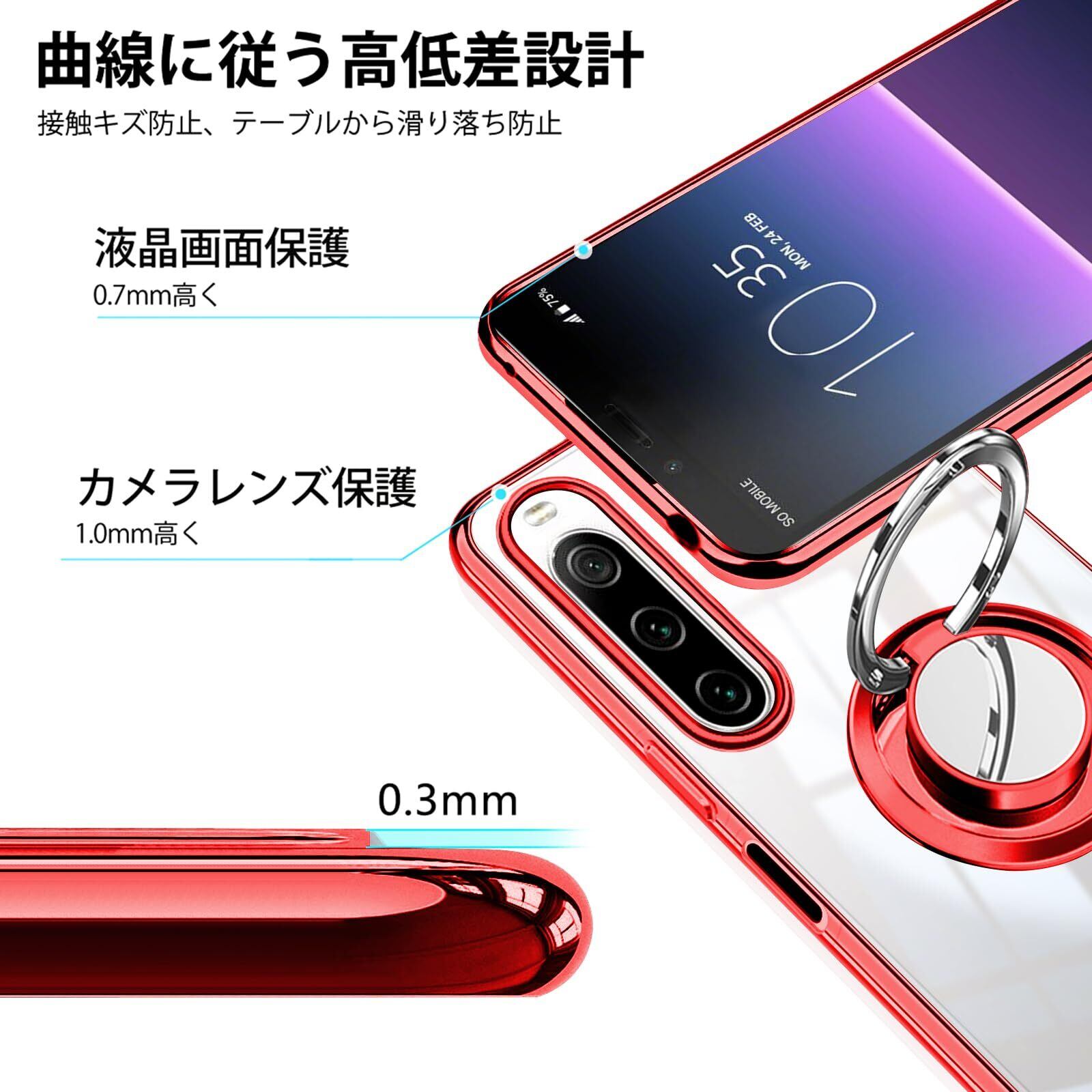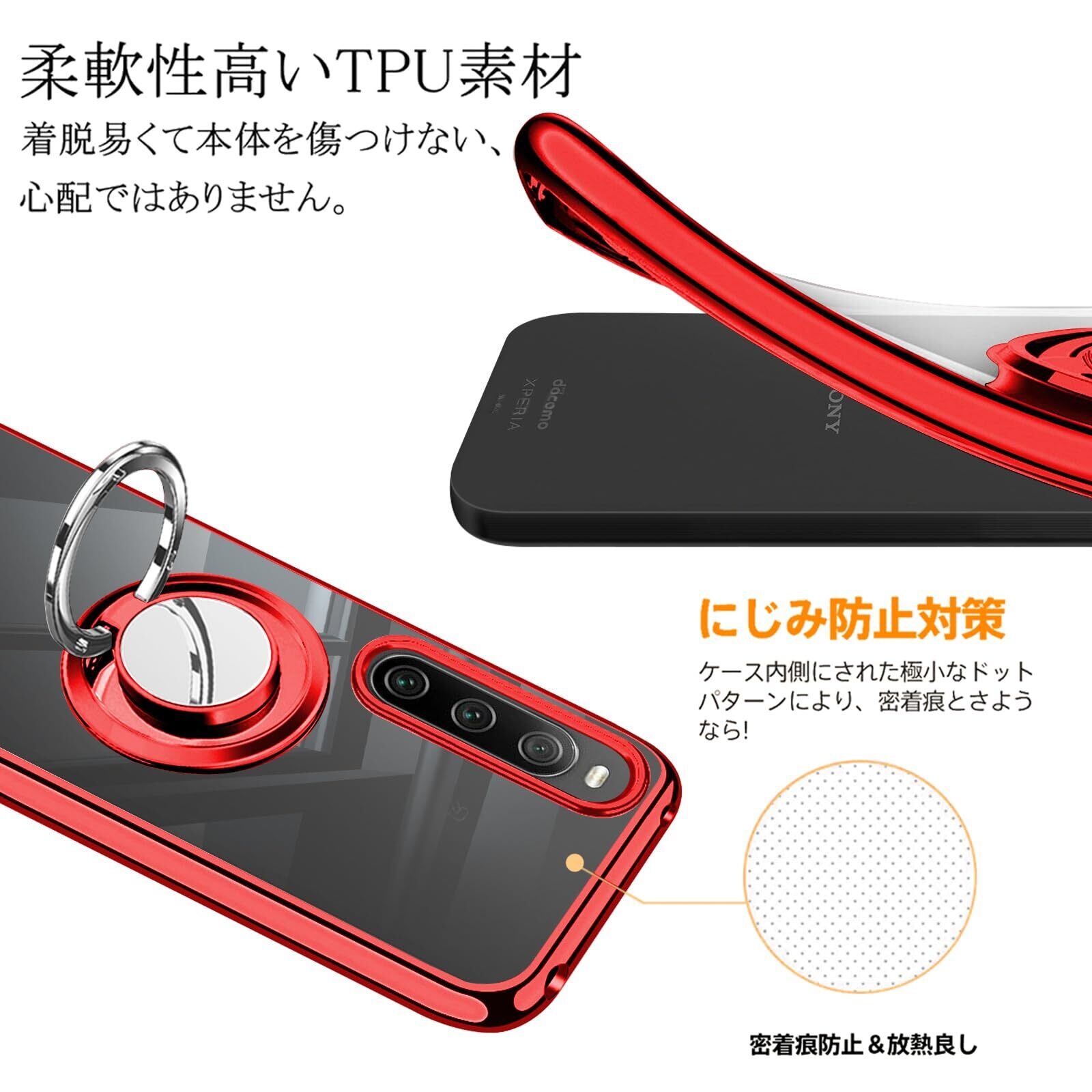 Zabarsii Xperia 10 II 用の ケース リング クリア TPU 耐衝撃 透明 赤 メッキ加工 SO-41A スマホケース SOV43 カバー スタンド機能 車載ホルダー 360°回転 ストラップホール付き Xperia 10II 用の カバー レッド