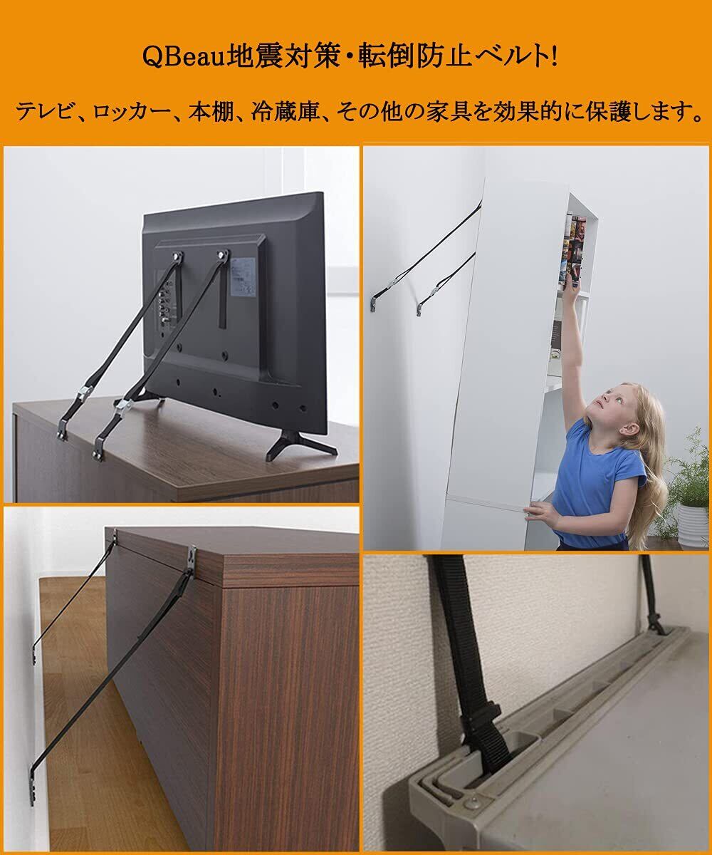 QBeau テレビ 転倒防止 TV 固定 地震対策ベルト 耐震ストッパー 2本セット,ボルトとハードウェアが含まれて