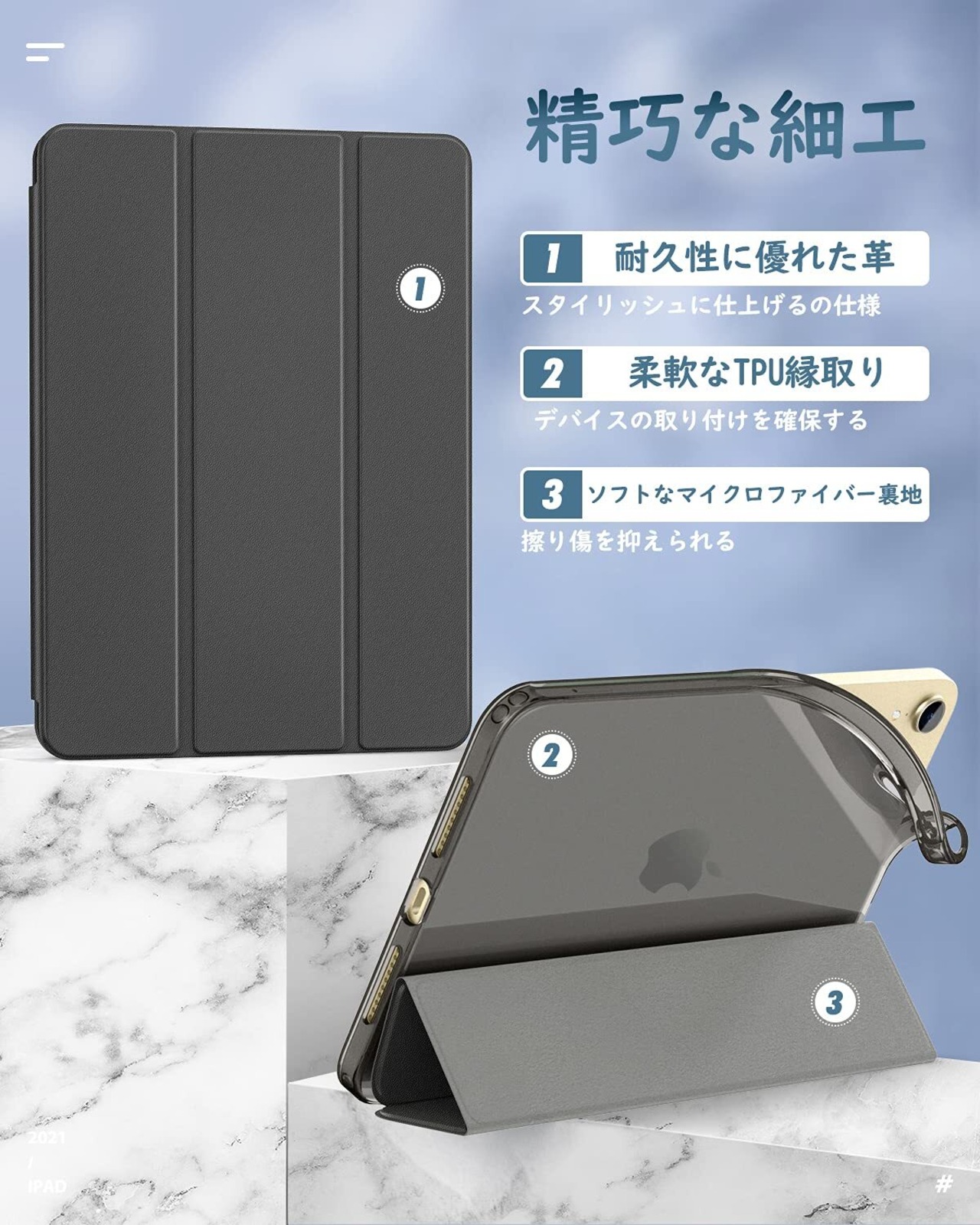 「前蓋PUレザー+背面半透明TPU」背面シェルは高級TPU素材で作り上げられ、持ちやすく仕上げられております。綺麗で高級感のあふれる仕様となっており、優しい手触り感じがして、取付やすくなっています。デバイスを汚れや衝撃からしっかり保護できます。
