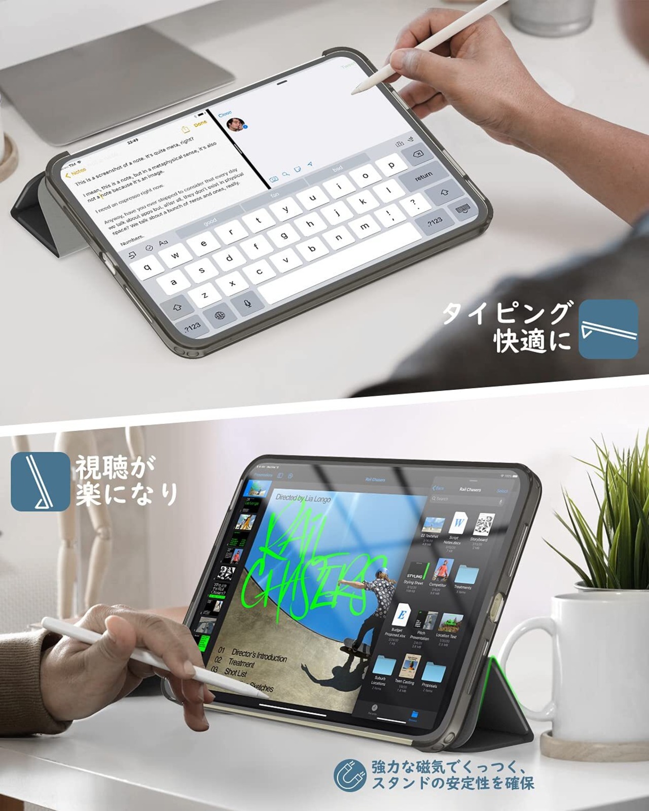 「ぴったり着装」簡単でぴったり着装できて、ケースを装着したまま電源ボタン、音量ボタン、写真を撮る、充電等すべての機能にアクセスできます。Apple Pencilを嵌められる口が付き、Pencilをしっかり嵌めて保管でき、ペアリング、ワイヤレス充電も便利になります。Apple Pencil Pro対応機種:iPad Mini A17 Pro、Apple Pencil 2対応機種:iPad Mini 6