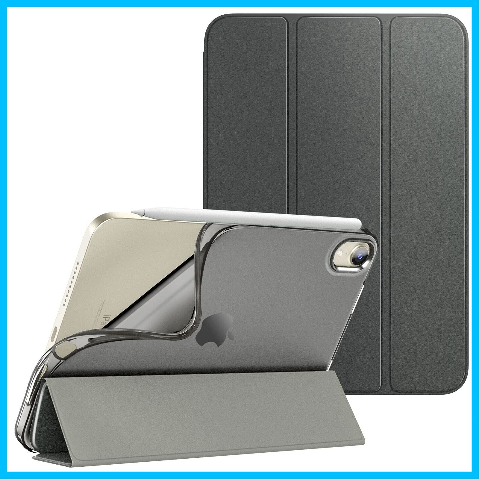iPad Mini A17 Pro iPad Mini6 ケース Dadanism iPad mini 2024/2021 iPad Mini 第7/6世代 保護ケース iPad 8.3 インチ スマートカバー 透明感 薄型 PU レザー キズ防止 開閉式 三つ折薄型 TPU素材 スタンド機能 衝撃吸収 オートスリープ機能付き Apple Pencil 充電に対応 スペースグレー