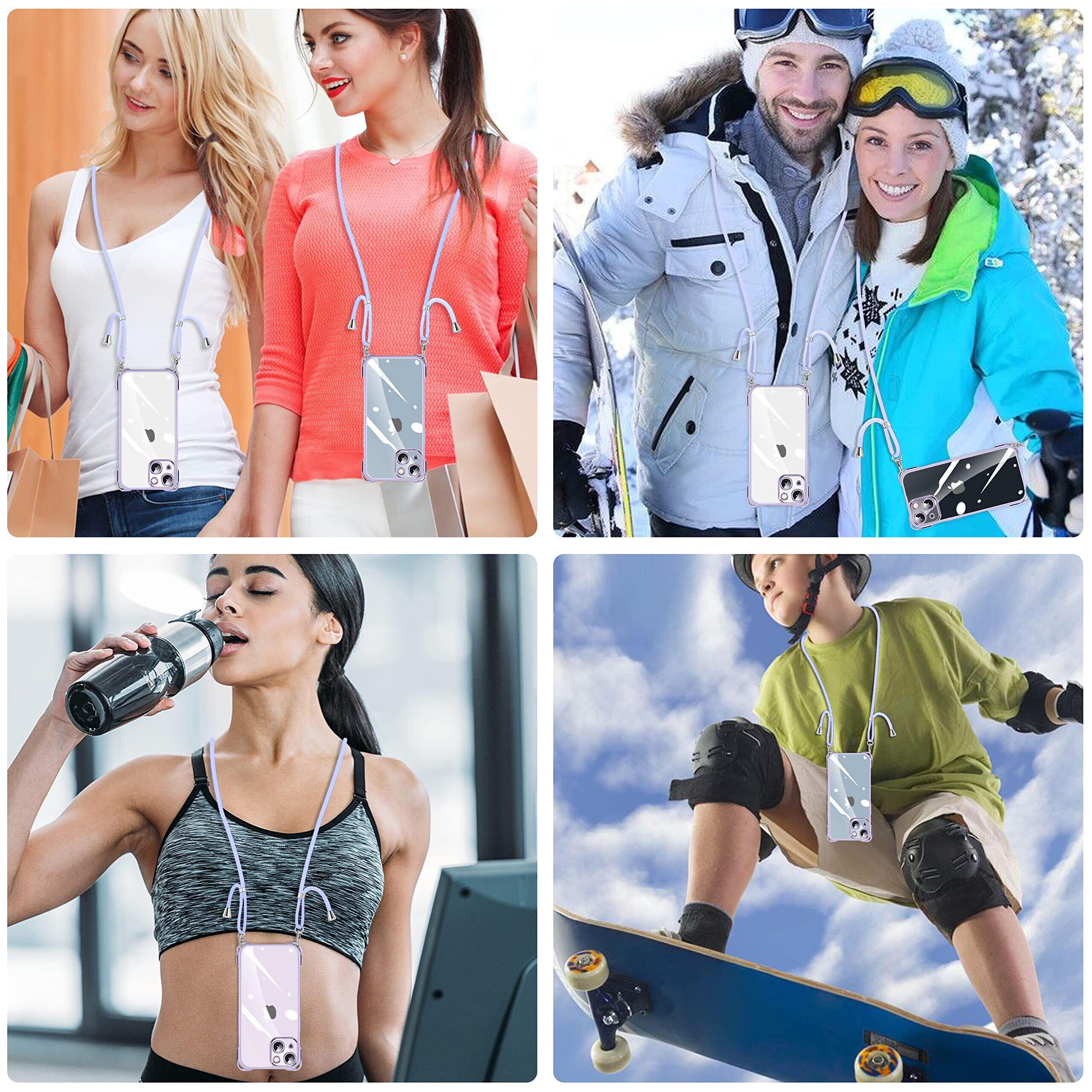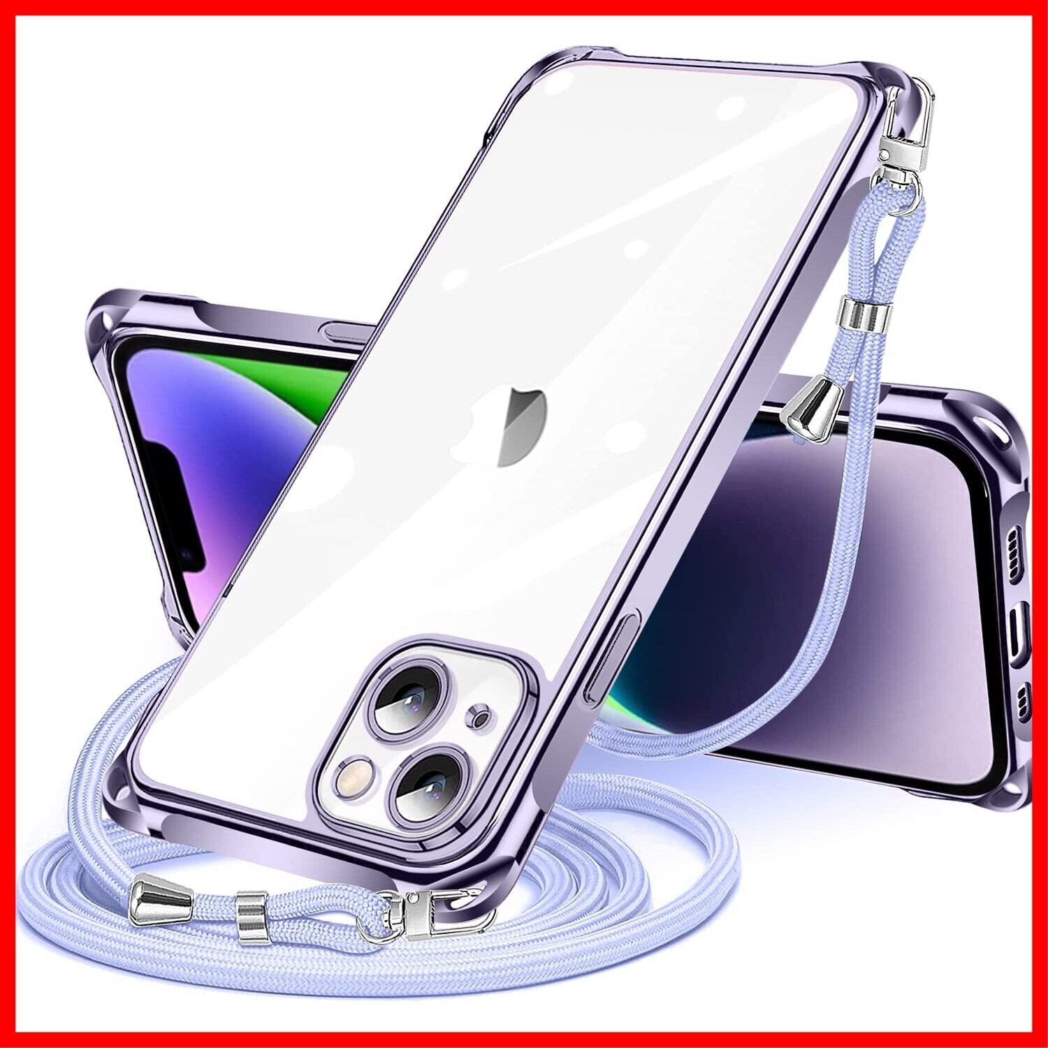 NISIILNG iPhone 13 用 ケース クリア ショルダー iphone13 スマホケース アイフォン13 カバー 肩掛け 斜めかけ 縄掛けケース 透明 TPU 薄型 軽量 耐衝撃 紐付き 斜めがけ 織りストラップ付き ネックストラップ ショルダー 縦/横 2WAY 長さ調整可能 取り外し可能 落下防止 紛失防止 (パープル)